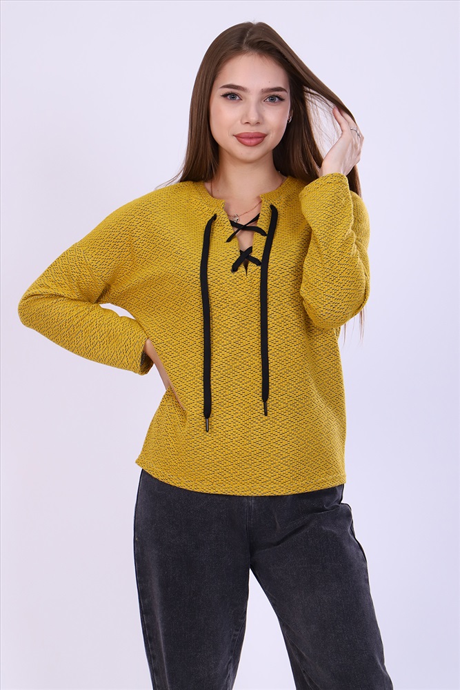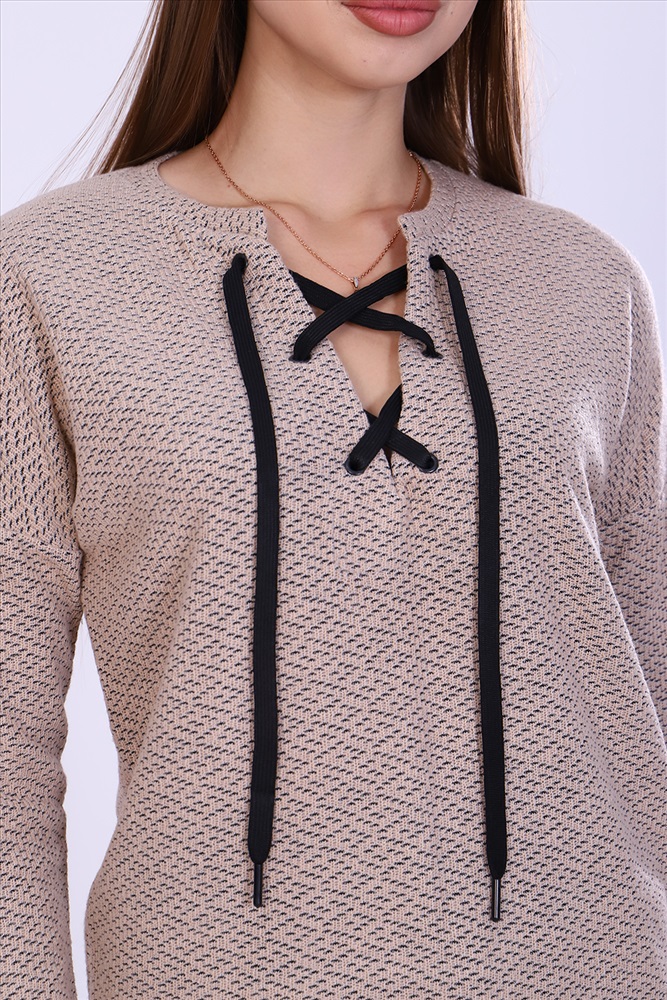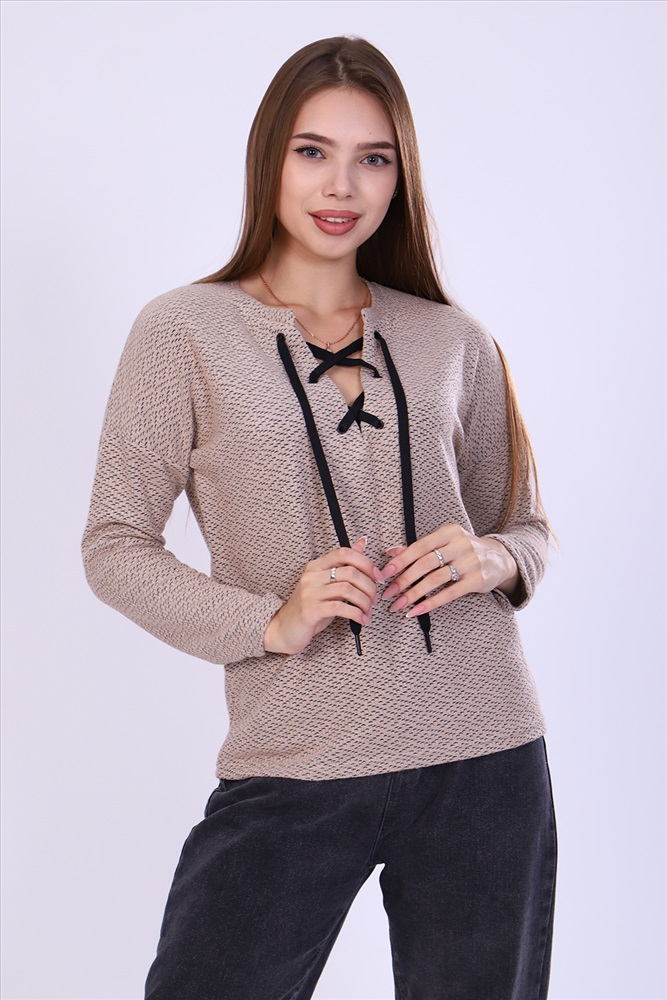 Застежка: без застежки Джемпер женский из мягкого вязаного трикотажа. V-образный вырез горловины декорирован люверсами и шнуром, спущенная пройма, длинный рукав. Джемпер комфортный, универсальный, создаст неповторимый стиль для модницы любой фигуры и возраста. С наступлением холодов эта вещь становится основой всего базового гардероба, отличным офисным вариантом.