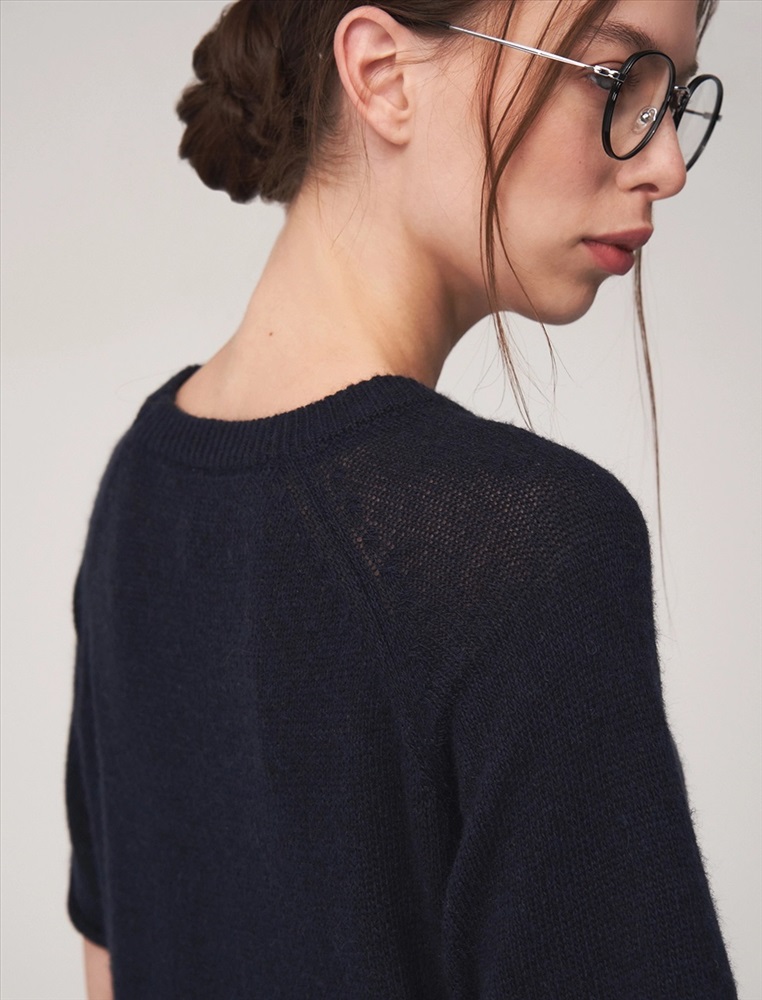 осень-зима 55% Хлопок, 25% Акрил, 20% Кашемир Вязаный джемпер регулярного силуэта с коротким рукавом по типу реглан. Горловина круглой формы. Края рукавов и низа имеют необработанный эффект. Выполнен из хлопка, акрила и кашемира, обеспечивающих тепло и мягкость. Представлен в трех базовых оттенках: бежевый, коричневый, синий.