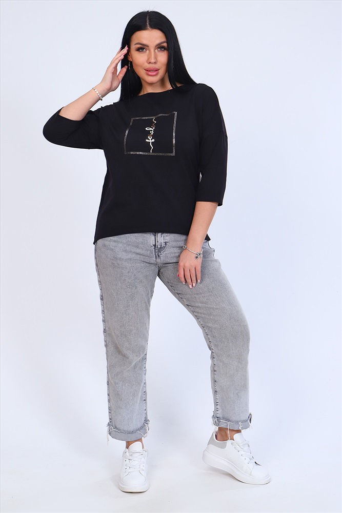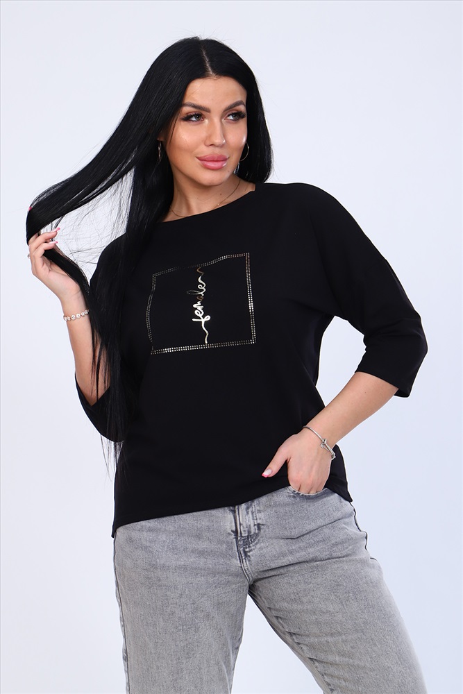 Застежка: без застежки Джемпер женский с мерцающим принтом, из плотной кулирки с лайкрой высокого качества пенье. Футболка с рукавом 3/4, слегка приталенного силуэта, горловина круглая обработана обтачкой, спущенная пройма, спинка слегка удлинена. Лонгслив стильный, лёгкий, приятный к телу, отлично подойдёт как для работы в офисе, так и для вечерних мероприятий. Длина рукава в таблице измерений указана от начала горловины.