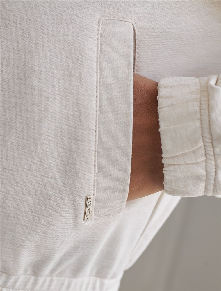 Плотность: 240 Г/м2 Свободный бомбер бежевого цвета с эффектом меланж на молнии выполнен из премиального футера трехнитки без начеса, обеспечивает мягкость и комфорт при носке. Натуральный состав обеспечивает дышащий эффект, мягкость и приятные тактильные ощущения, Эластичный материал позволяет свободно двигаться без лишнего стеснения, а также отлично сохраняет форму даже после длительного ношения. Высокий воротник, манжеты на рукавах и резинка по низу обеспечивают надежную посадку, сохраняя тепло в прохладную погоду. Оверсайз бомбер отличается спущенной линией плеч и универсальной длиной, которая идеально подходит для повседневного и спортивного образа. Прорезные карманы по бокам добавляют функциональности, сохраняя при этом стильный внешний вид. Бомбер из футера украшен деликатной вышивкой в виде эмблемы бренда, которая придает особый шарм и подчеркивает индивидуальность владелицы. Такой изысканный элемент декора гармонично сочетается с лаконичным дизайном, отвечая современным тенденциям моды. Так же на одном из карманов расположен небольшой металлический логотип бренда. Представленная размерная линейка позволяет подобрать оптимальный вариант для любой фигуры и размера, на маленький или плюс сайз, обеспечивая свободу движений без компромиссов по стилю. Этот легкий бомбер станет отличным дополнением к базовому гардеробу, сочетая практичность с элегантностью. Рекомендуем сочетать с артикулами: D44.164, D44.166, D49.138, D44.145, D44.130, D44.079, D44.089 Мужские артикулы для family look: U49.014, U48.002, U48.003 Комментарии к товару