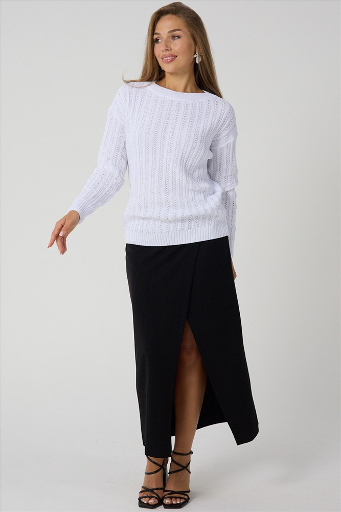 Застежка: без застежки Джемпер женский из премиальной турецкой пряжи станет незаменимой частью вашего гардероба. Универсальный дизайн свитера женского идеально подходит как для офиса, так и для повседневной носки. Длинный рукав и тонкий, но теплый материал обеспечивают комфорт в прохладную погоду. Узор добавляет изделию изысканности, делая его подходящим даже для особых случаев. Создайте свой неповторимый образ с нашим базовым джемпером, в котором сочетаются комфорт и стиль в каждой детали!