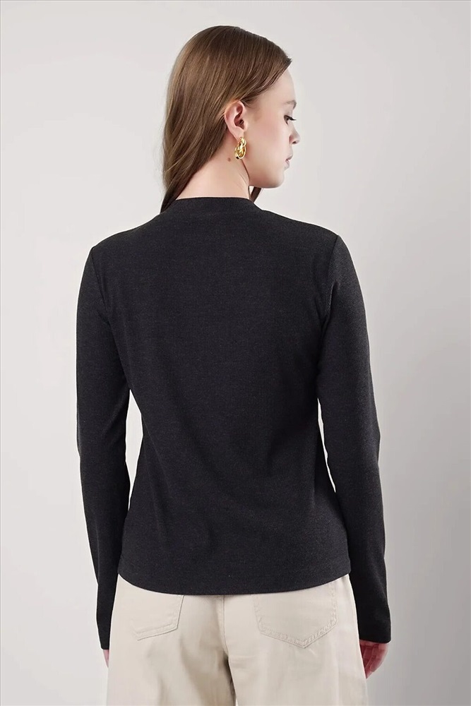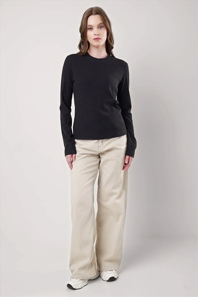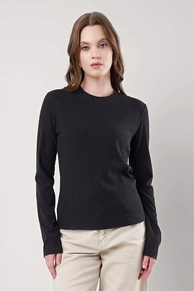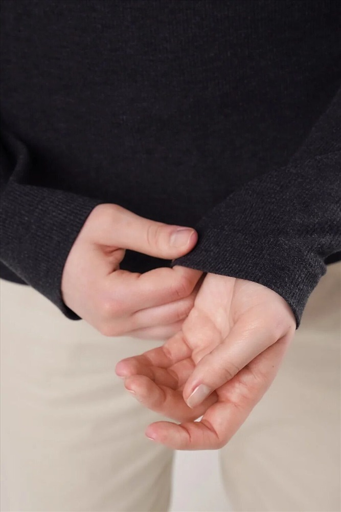 Джемпер из поливискозного трикотажного полотна кашкорсе с эластаном. Округлая горловина с обтачкой. По переду отстроченные резы. Длинный втачной рукав.