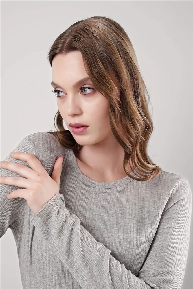 Фуфайка из вискозного трикотажного полотна кашкорсе с эластаном. Округлая горловина с окантовкой. Длинный втачной рукав. По низу рукава и изделия -мелкий оверлок.