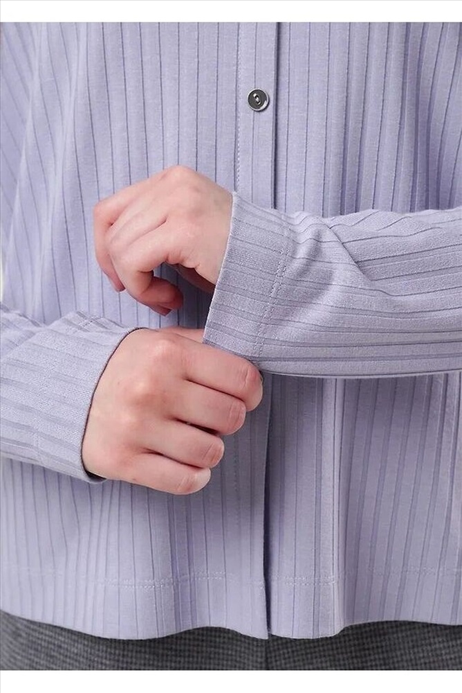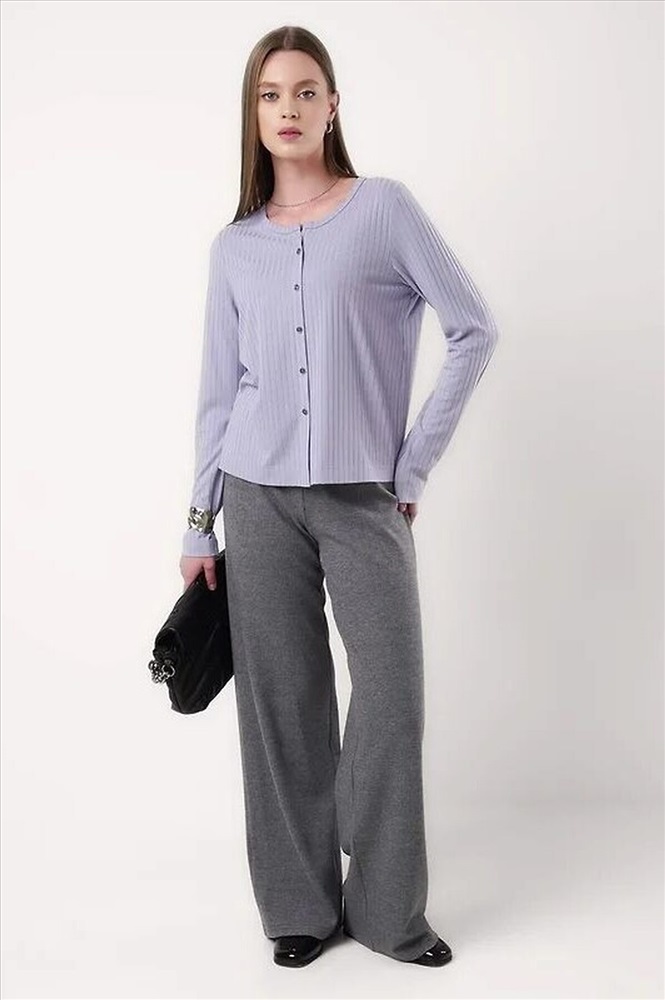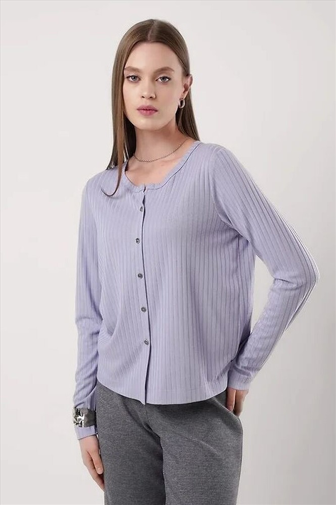 Джемпер прямого силуэта из вискозного трикотажного полотна кашкорсе с застежкой на пуговицы. Втачной длинный рукав. Округлая горловина с окантовкой.