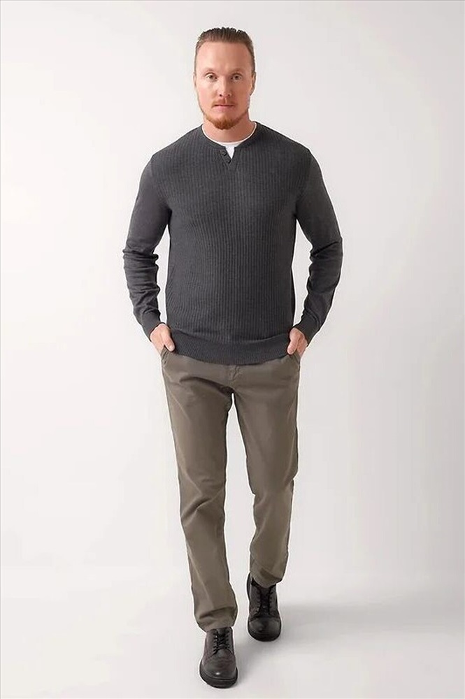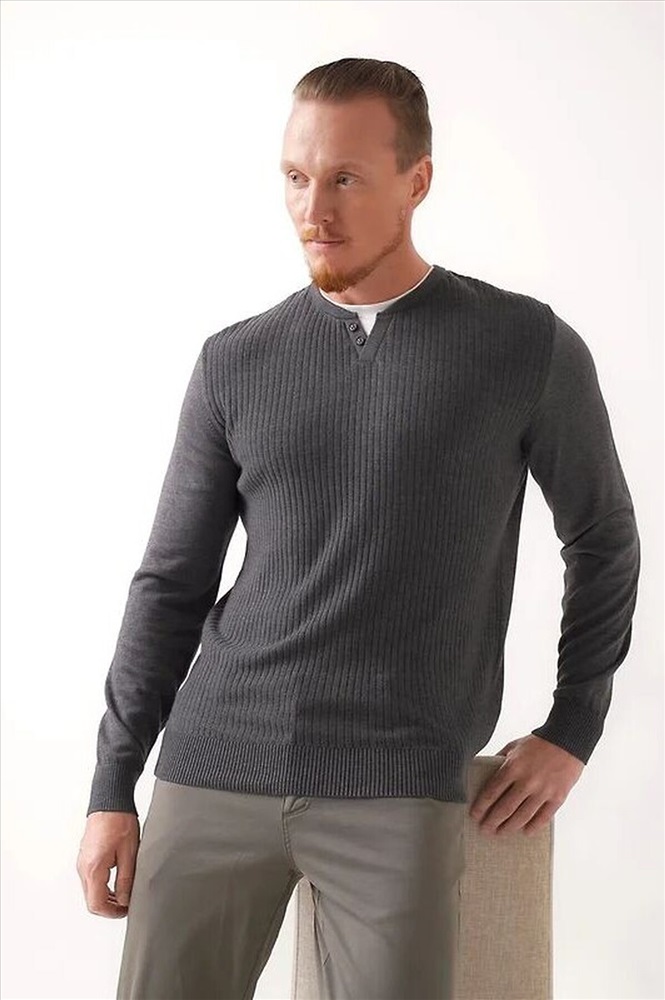 Джемпер мужской из смесовой хлопковой пряжи с длинным рукавом, планкой с имитацией двойной горловины. Отличное решение на холодное время года. Данный джемпер можно комбинировать с брюками или джинсами. Прекрасно подойдёт для похода на работу.