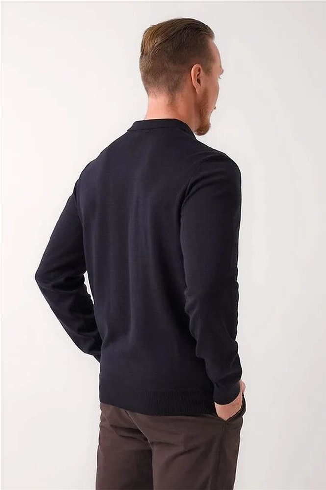 Вязаное поло на пуговицах с длинным рукавом, выполненное из смесовой пряжи, идеально сочетает стиль и комфорт. Модель связана плотным переплетением, что придает ей элегантность и современный вид, делая ее отличным выбором для прохладных дней.