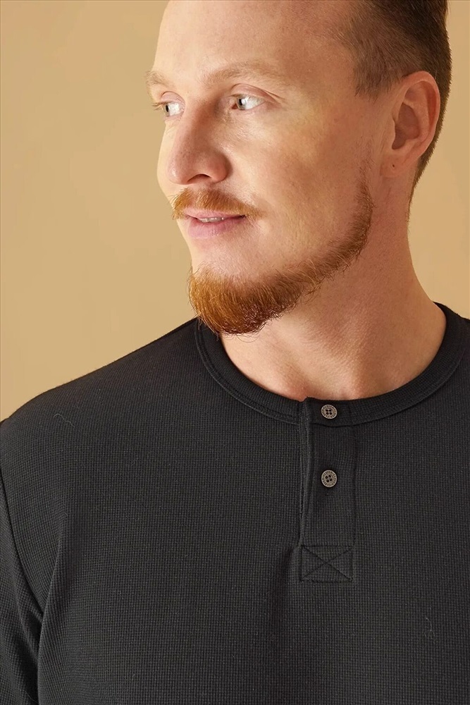Страна производства: Россия Лонгслив мужской с длинным рукавом, округлой горловиной и планкой, выполнен из фактурного трикотажного "вафля". Модель дополнена имиджевой фурнитурой. Прекрасно подойдёт для любого низа благодаря своей универсальности.