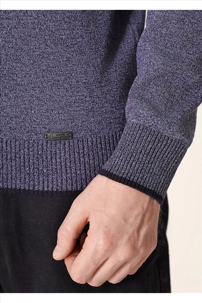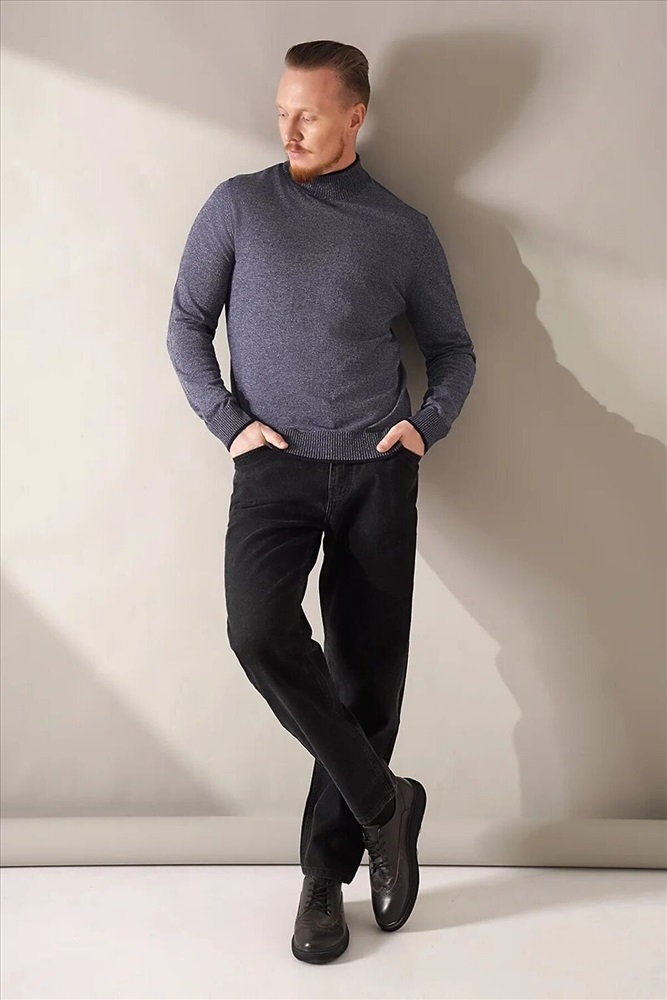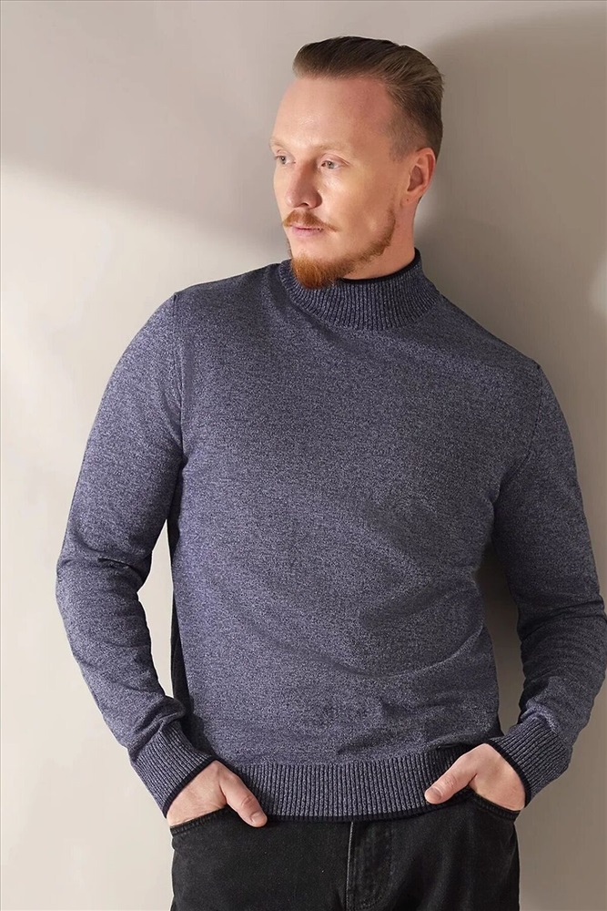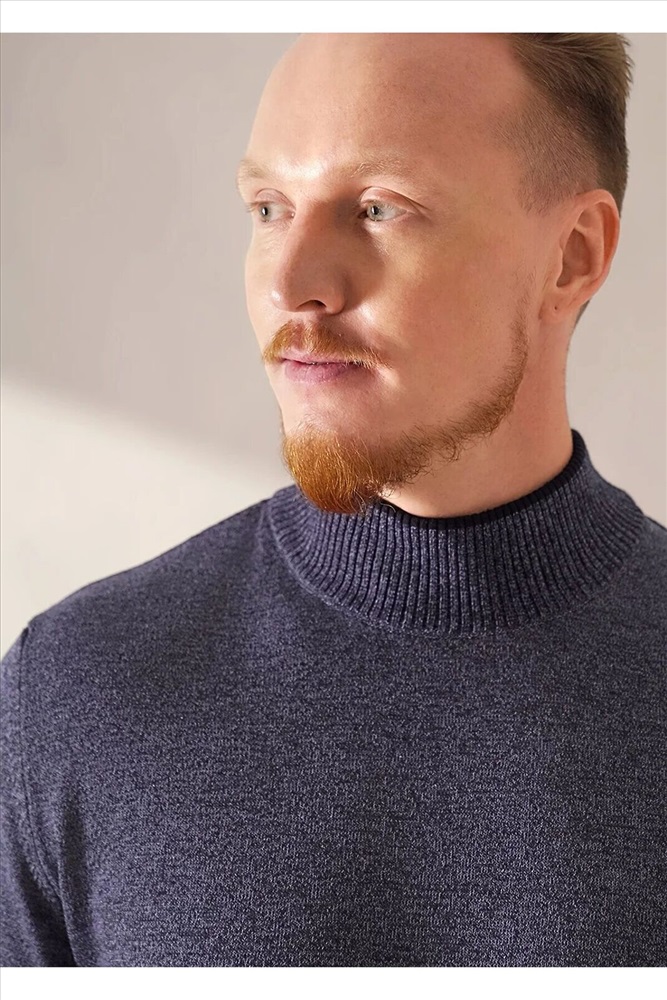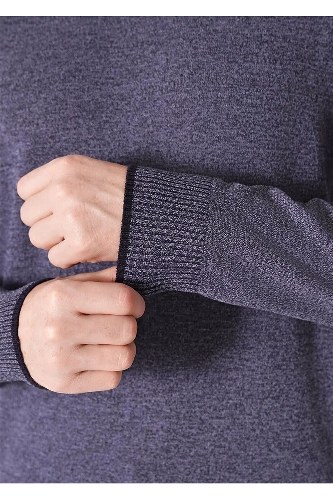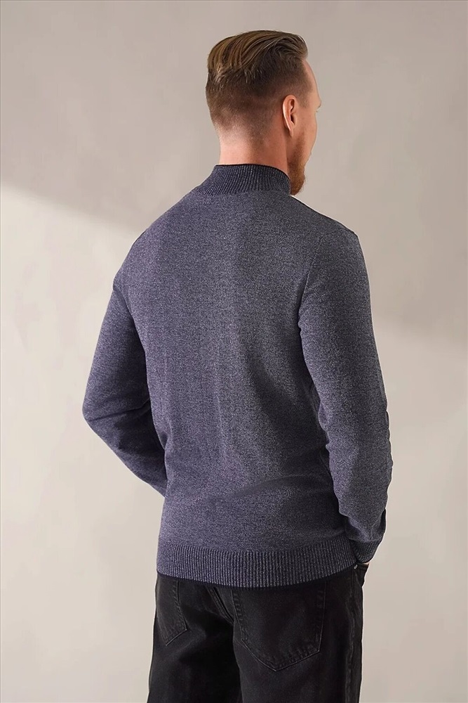 Джемпер мужской из смесовой хлопковой пряжи с длинным рукавом и воротником стойкой. Прекрасно сохраняет тепло, комфортный в носке, отличное решение на прохладное время года. Комбинируется с джинсами или брюками.