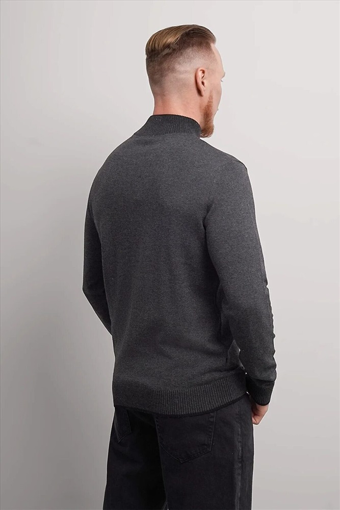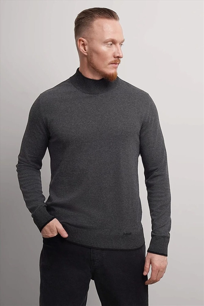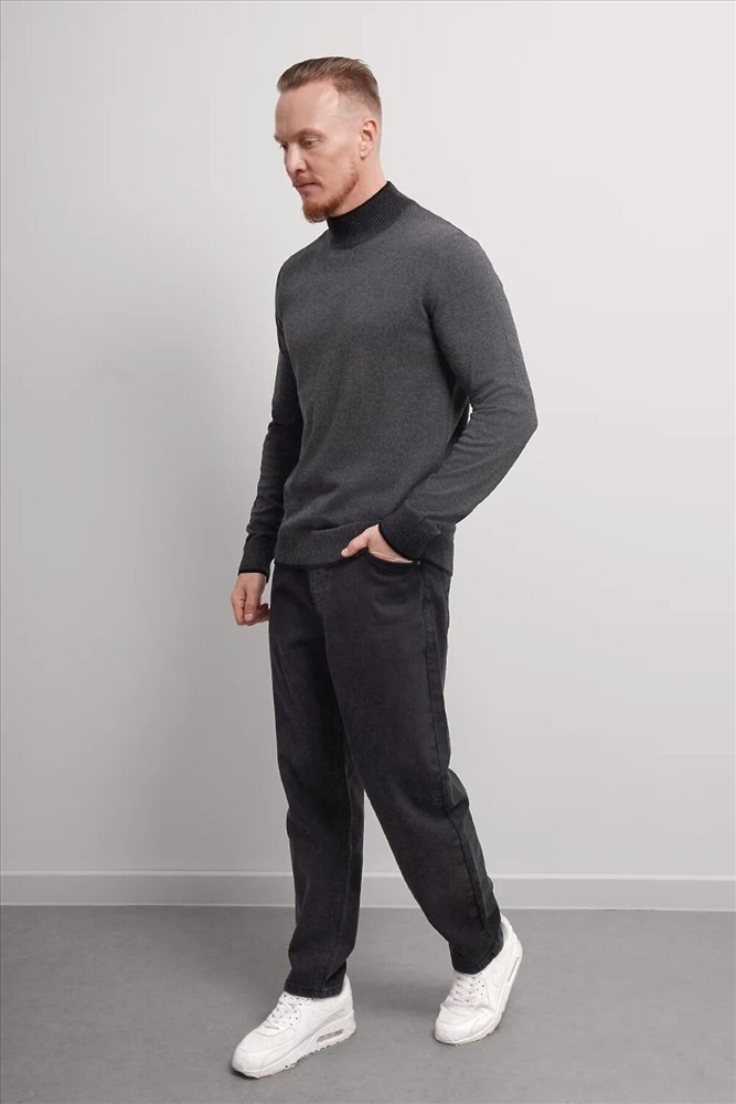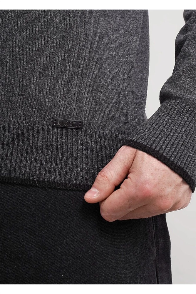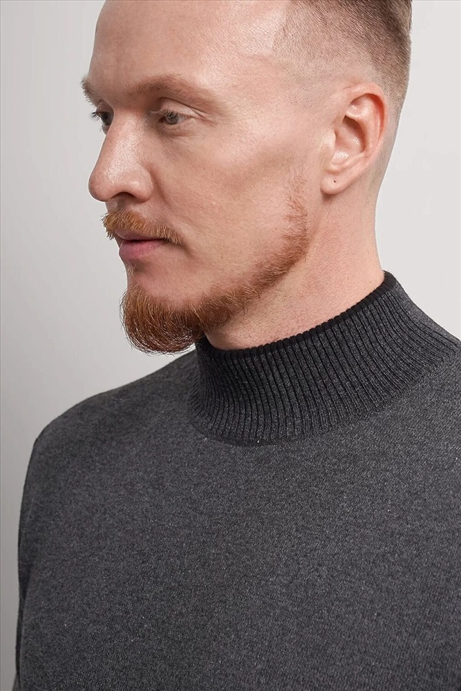 Джемпер мужской из смесовой хлопковой пряжи с длинным рукавом и воротником стойкой. Прекрасно сохраняет тепло, комфортный в носке, отличное решение на прохладное время года. Комбинируется с джинсами или брюками.