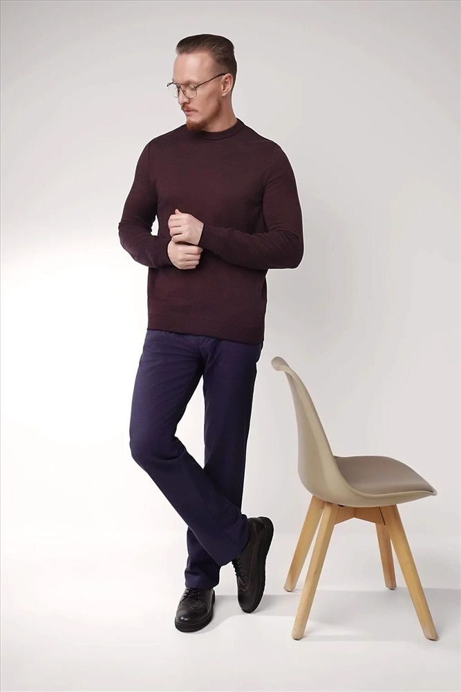 Классический вязаный джемпер с круглой горловиной. Изделие изготовлено из смесовой пряжи с содержанием хлопка. Данный джемпер удачно впишется в повседневный гардероб современного мужчины, привнося тепло, комфорт и элегантность одновременно.