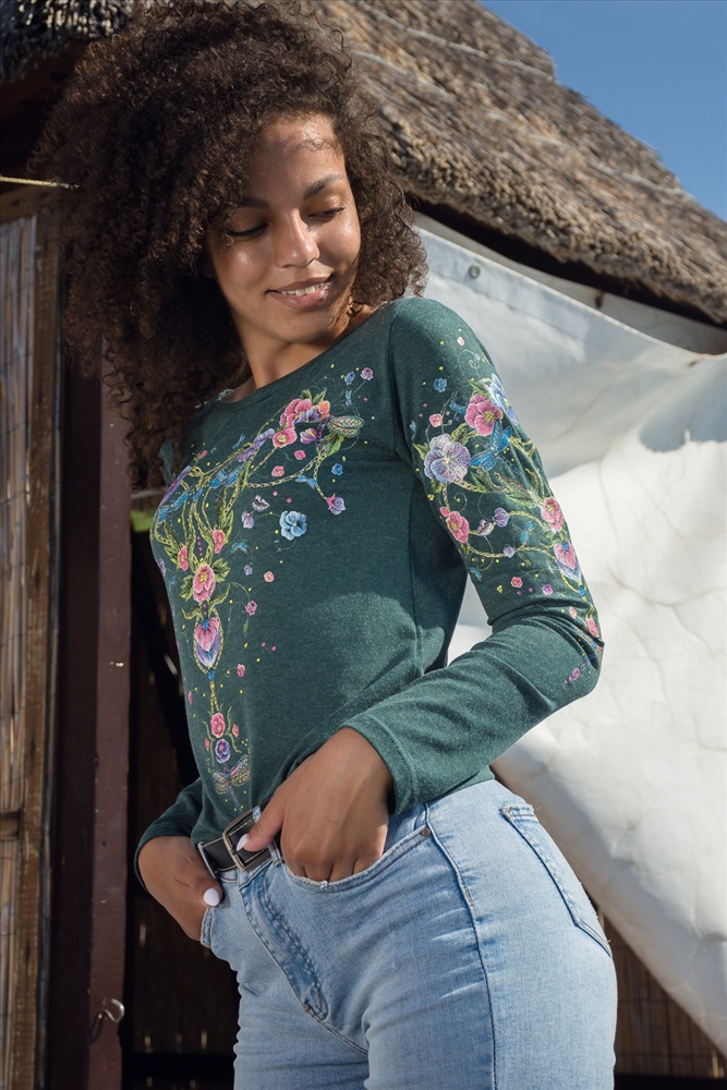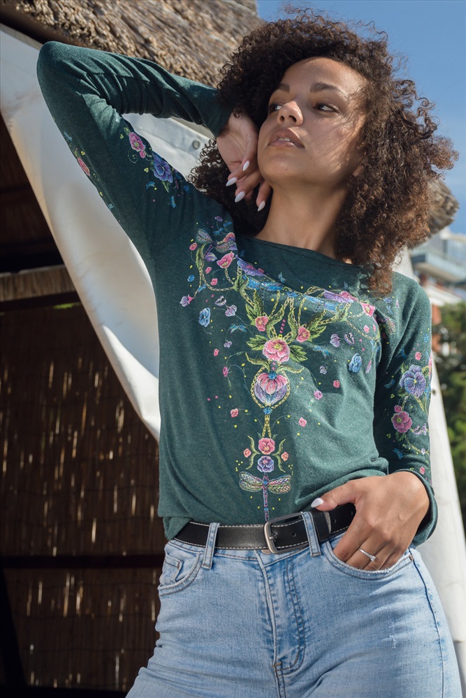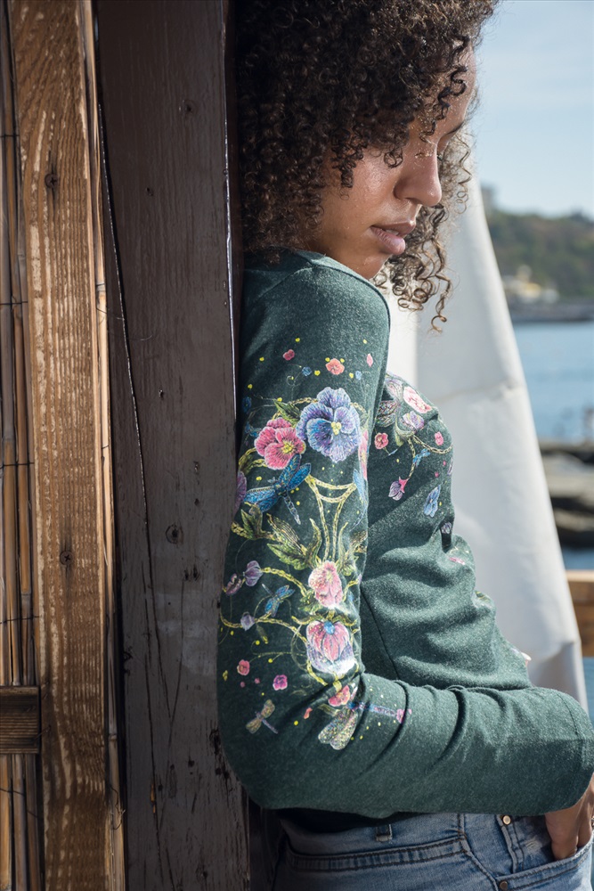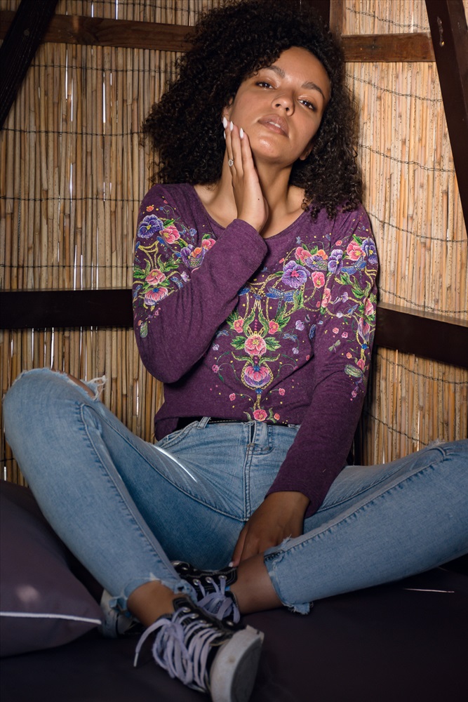 Состав: вискоза 35%, п\э 60%, лайкра 5%. Модель: Джемпер Энигма Тип товара: джемпер Материал: ангора | ангора Бренд: Натали Суслова Карман: без карманов Отделка: с печатью Рисунок: цветы Рукав: длинный рукав Сезонность: осень | весна | зима Силуэт: полуприлегающий Стиль: молодежный | повседневный Воротник: без воротника Застежка: без застежки Универсальная модель из очень мягкой, комфортной к телу ткани. Прекрасно комбинируется с лосинами, джинсами, юбками, брюками. Полочка и рукава оформлены красивым цветочным принтом со стрекозами с добавлением золотого глиттера. Ткань очень хорошо тянется. Таблица размеров и веса