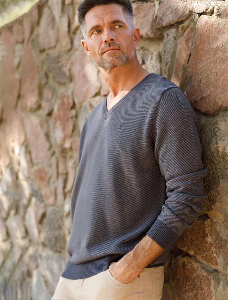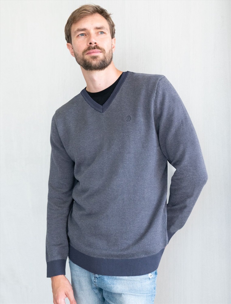 Параметры модели на первом фото: Рост 187, бюст 102, талия 87, бедра 103 Для изготовления серого джемпера с клиновидным вырезом и длинными рукавами использовали пряжу из премиального хлопка с акрилом. У модели получилась очень мягкая и приятная на ощупь фактура из переплетения нитей нескольких цветов. Изделие комфортно носить даже на голое тело или дополнив образ футболкой. Роскоши вносит вышитый логотип бренда.