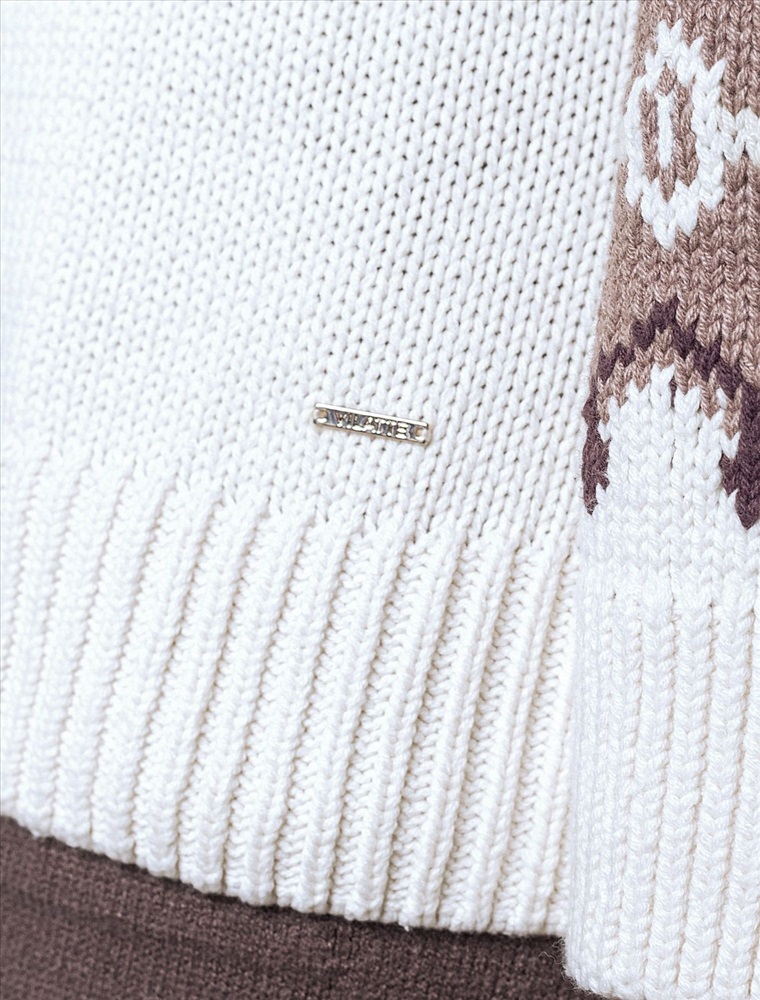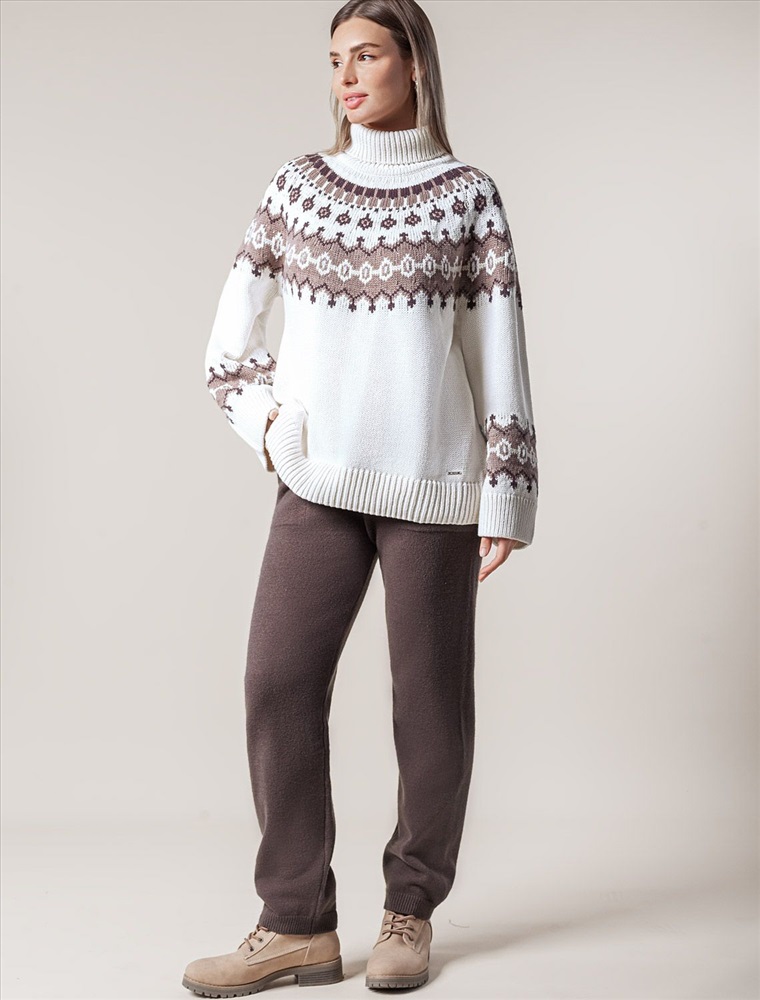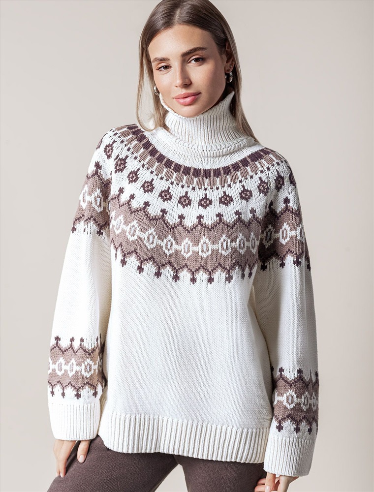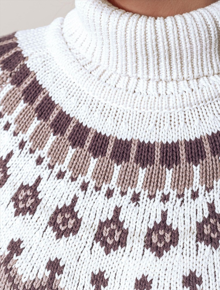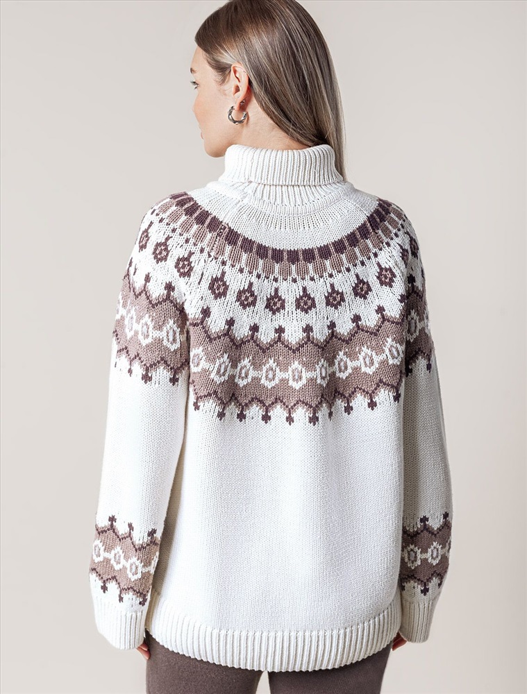 Джемпер фактурной вязки выполнен из хлопковой пряжи с добавлением акрила. Уютная модель в скандинавском стиле внесет эстетику зимнего загородного отдыха в любой гардероб. Мягкая пряжа очень приятная к телу хорошо поддерживает тепло при этом не перегревая. Отлично держит форму даже после множества стирок. Свободный силуэт позволяет носить под низ футболки, лонгсливы и топы. Изделие дополнено металлическим логотипом бренда.