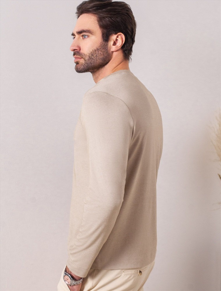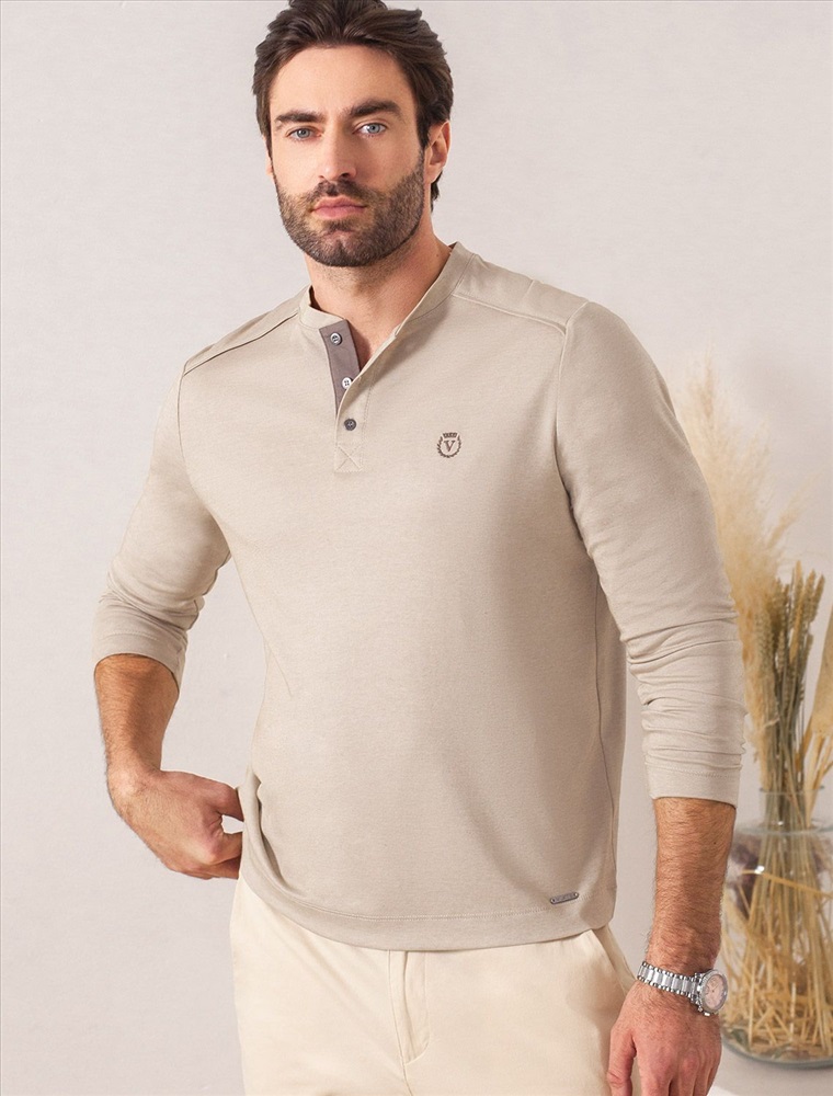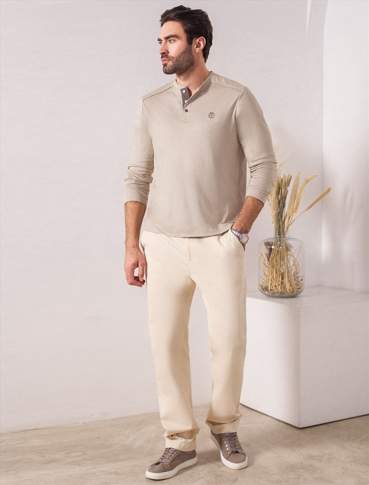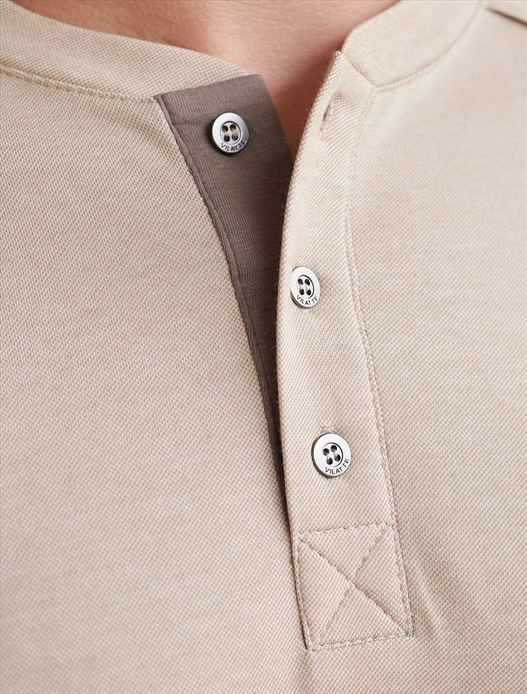 Плотность: 170 Г/м2 Джемпер хенли темно-бежевого цвета из полотна пике, состоящий из двух оттенков нити, создающем эффект меланж. Мягкая и дышащая ткань обеспечивает комфорт в течение всего дня, позволяя коже дышать и поддерживать оптимальную воздухопроницаемость. Материал тянется, обеспечивает долговечность и сохраняет презентабельный внешний вид даже после многократных стирок. Контрастная планка и пуговицы в благородном матовом металле поддерживают стиль old money, а аккуратная нашивка на груди в виде логотипа бренда подчеркивает статусность. По бокам аккуратные разрезы для свободы движений и дополнительного удобства. Джемпер подходит для любых ситуаций — от деловых встреч до повседневных прогулок. Такая вещь станет универсальным решением для тех, кто ценит удобство и элегантность в одежде. Лаконичный дизайн легко сочетается с джинсами или брюками, что позволяет создавать разные образы. Комментарии к товару