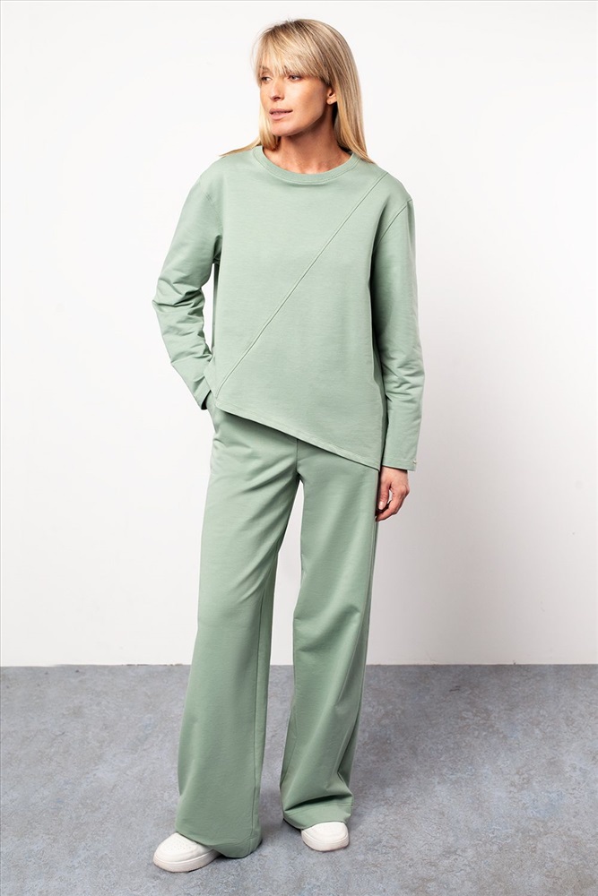 Параметры модели на первом фото: Рост 172, бюст 88, талия 64, бедра 88 Ассиметричный джемпер выполнен из премиального футера двухнитки. Спущенная линия плеча поддерживает расслабленный образ, который особенно хорошо будет сочетаться в костюме с брюками D44.122, D44.123 и D44.128. Наличие эластана в составе изделия гарантирует идеальную посадку и комфорт.