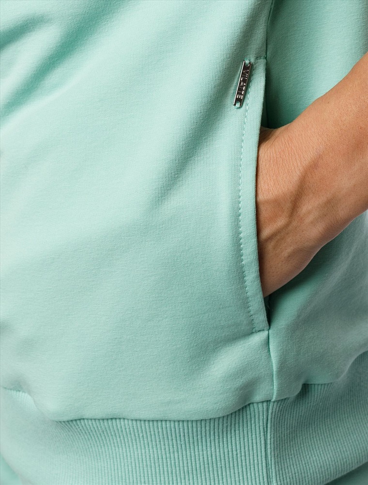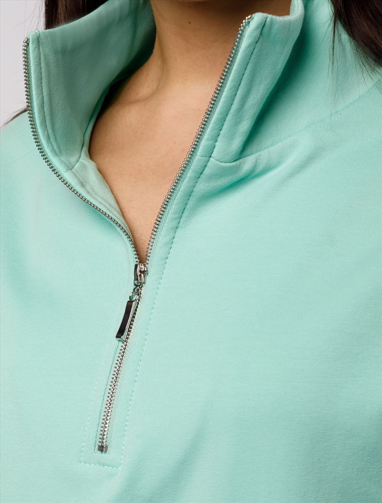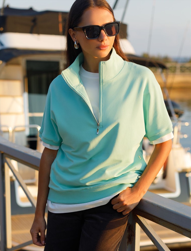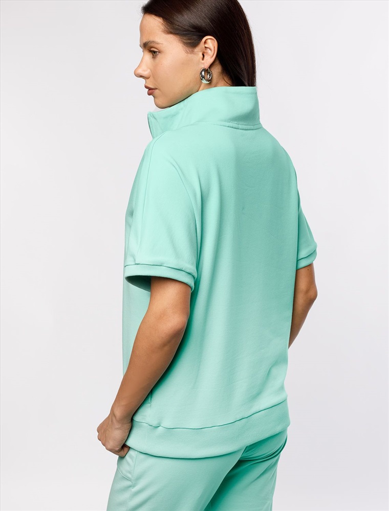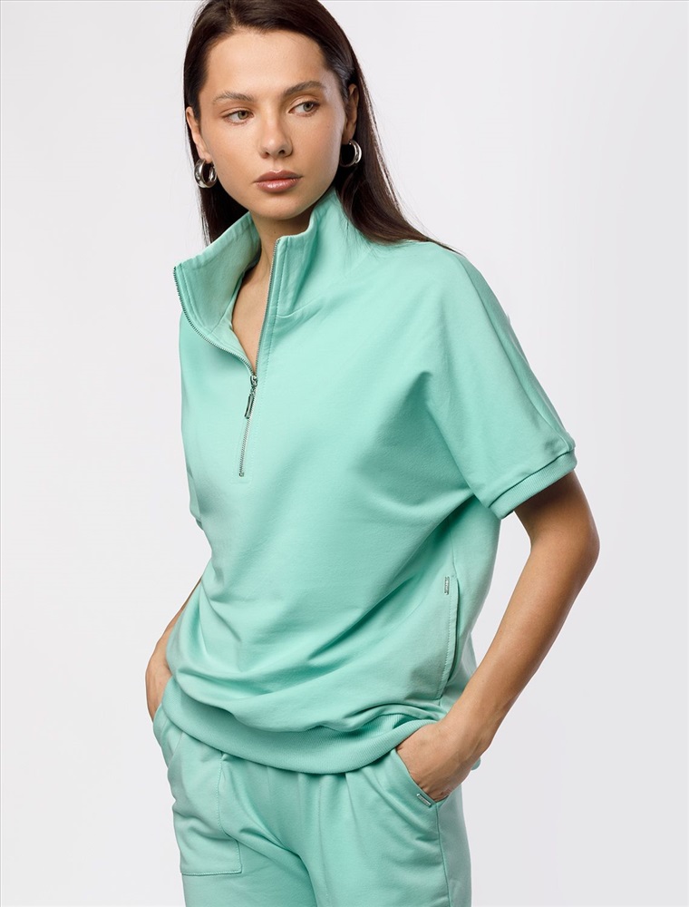 Плотность: 240 Г/м2 Параметры модели на первом фото: Рост 170, бюст 83, талия 64, бедра 88 Джемпер среднего объема со спущенным плечом выполнен из футера двухнитки с эластаном. Изделие с воротом на серебристой молнии дополнено боковыми карманами. Эластичный материал гарантирует комфорт и формоустойчивость. Сочетается в костюме с брюками D44.138, D44.139 и шортами D48.008. Изделие дополнено металлическим логотипом бренда. Комментарии к товару