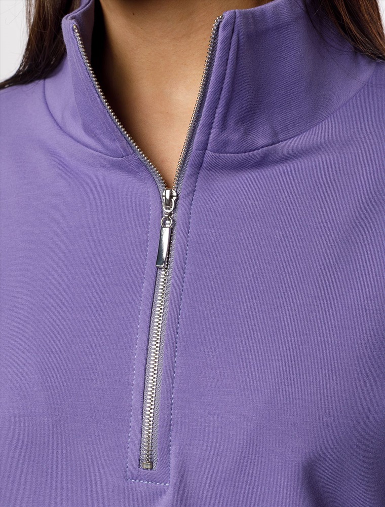 Плотность: 240 Г/м2 Параметры модели на первом фото: Рост 170, бюст 83, талия 64, бедра 88 Джемпер среднего объема со спущенным плечом выполнен из футера двухнитки с эластаном. Изделие с воротом на серебристой молнии дополнено боковыми карманами. Эластичный материал гарантирует комфорт и формоустойчивость. Сочетается в костюме с брюками D44.138, D44.139 и шортами D48.008. Изделие дополнено металлическим логотипом бренда. Комментарии к товару
