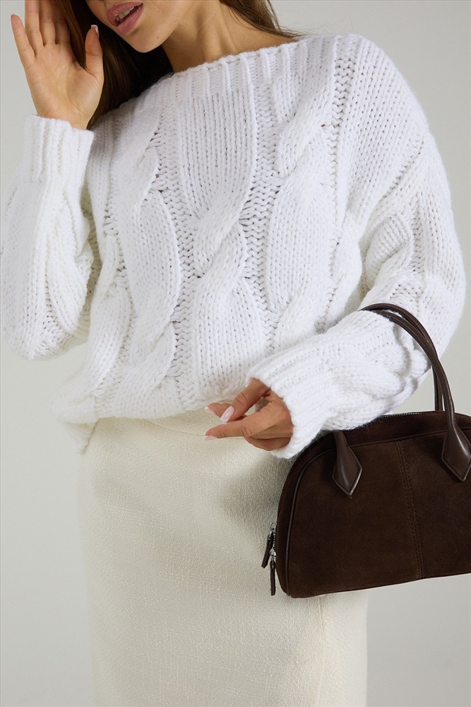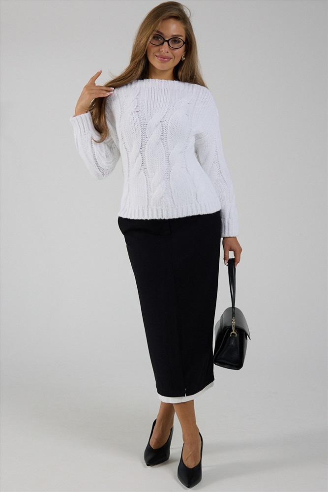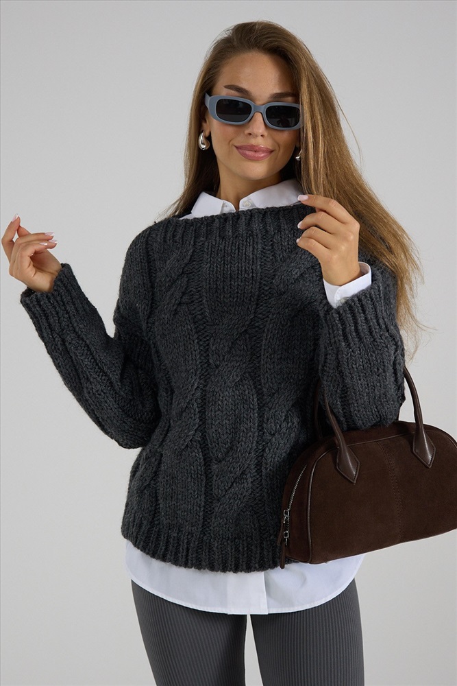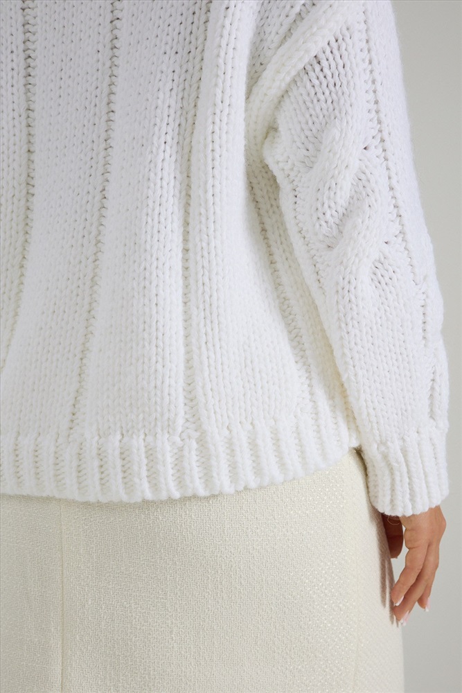 Застежка: без застежки Женский вязаный джемпер от бренда Юмтекс это стильное и комфортное решение для создания повседневных, деловых и праздничных образов. Свободный крой обеспечивает максимальный комфорт движений и идеально подходит для любой фигуры. Модель выполнена из комфортного и теплого материала составом 30% шерсть и 70% акрил, что гарантирует идеальное сочетание тепла и удобства в прохладные осенние и зимние дни. Элегантный рельефный узор вязаные косички придает джемперу объемный и текстурный вид, добавляя образу индивидуальности.