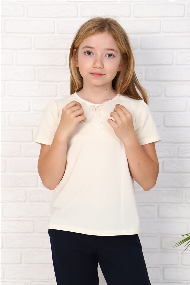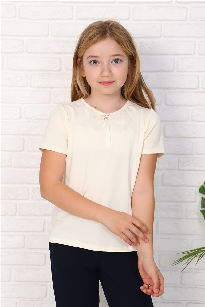 ID товара: 933970 Состав: 92% Хлопок, 8% Лайкра Сезон: Весна/Лето Длина: Средняя Фасон: Прямой Рукав: короткие Вырез горловины: Округлый Основная ткань: Хлопок Стиль: Повседневный Вид ткани: Кулирка с лайкрой Страна бренда: Россия Страна производства: Россия Джемпер для девочек младшего и старшего школьного возраста, из однотонного трикотажного полотна. Джемпер прилегающего силуэта, с втачным рукавом. Спереди и на спинке отсутствуют линии членения. По центру переда настрочен бант из сетки. Рукава короткие. По окату рукава небольшая сборка. Низ изделия подогнут. Горловина окантована. Спереди прикреплен декоративный элемент. Комментарии к товару