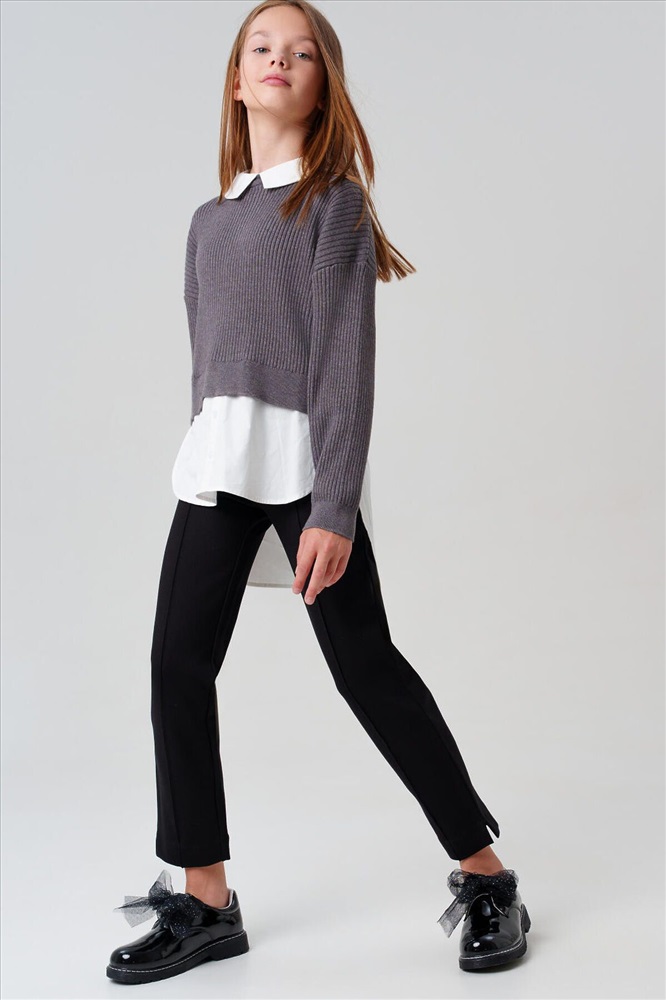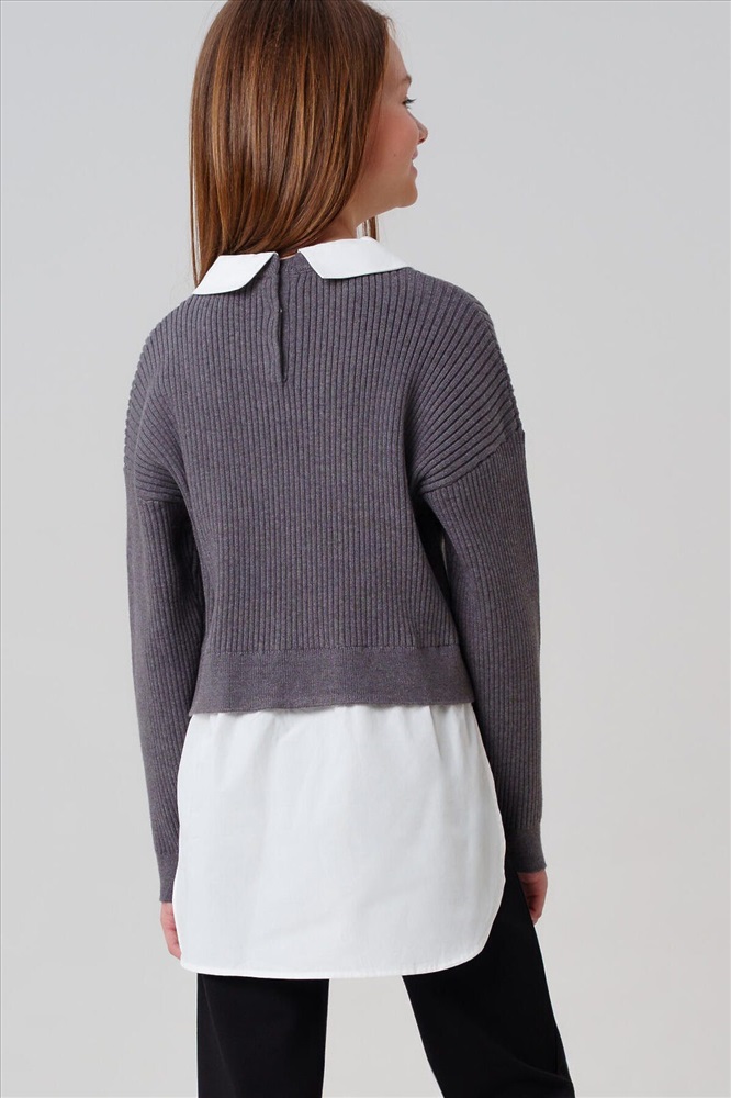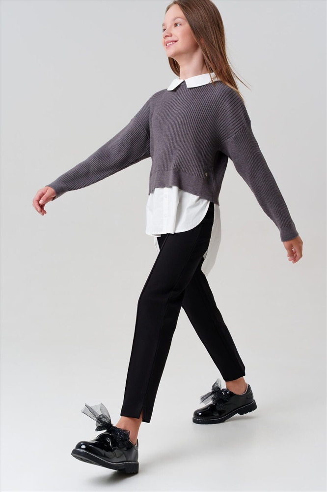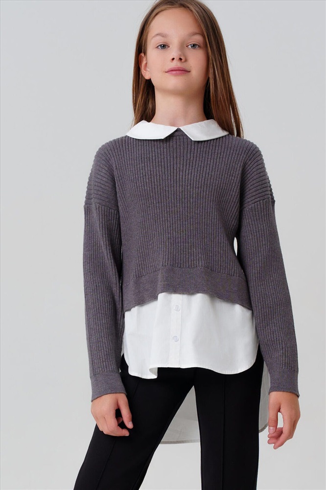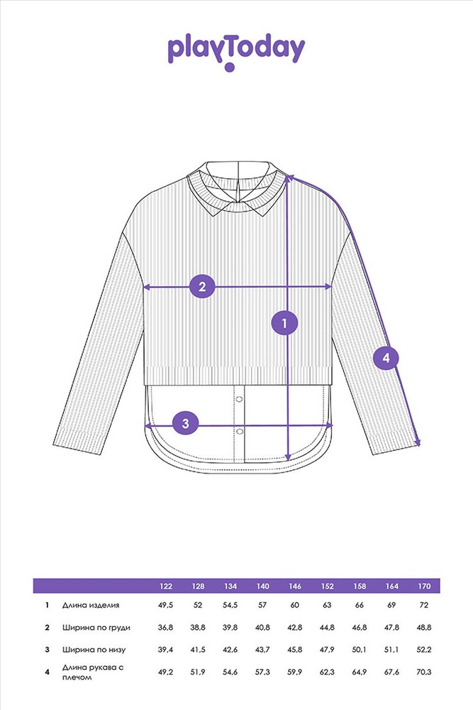 ID товара: 1178886 Состав: 55% Хлопок, 45% Акрил Сезон: Демисезон Длина: Средняя Фасон: Прямой Рукав: Длинные Вид застежки: Кнопки Вырез горловины: Отложной воротничок Основная ткань: Хлопок Стиль: классический Страна бренда: Германия Страна производства: Китай Классический серый школьный трикотажный джемпер оверсайз для девочки подростка от PlayToday — универсальный выбор для школы и повседневных образов. Модель выполнена в модном свободном силуэте, который не сковывает движения и дарит комфорт на весь день. Преимущества модели: + мягкий трикотаж с хлопком + застёжка на кнопки на спинке + эффект многослойности + удобный оверсайз-крой + универсальный серый цвет + лёгкий уход Этот серый подростковый джемпер для школы мягко облегает фигуру, создаёт актуальный многослойный образ и подчёркивает индивидуальный стиль подростка. Застёжка на спинке делает надевание максимально удобным, а свободный крой позволяет легко комбинировать такой классический детский джемпер для девочек с любой школьной одеждой. Серый цвет универсален — он отлично сочетается с юбками, брюками, сарафанами и аксессуарами из коллекции PlayToday. Базовый школьный джемпер для подростков подойдёт для строгих школьных образов, а также для прогулок и внеклассных занятий. Совет по стилю: носите нарядный элегантный джемпер с классической юбкой и белой рубашкой для официального лука или добавьте джинсы для повседневного комплекта. Модель легко стирается, быстро сохнет и сохраняет форму даже после множества стирок. Представлена в размерах на рост 128–170 см — оптимальный выбор для девочек и подростков от 8 до 16 лет. Модный серый хлопковый оверсайз джемпер в школу для девочки от PlayToday — это стиль, комфорт и универсальность на каждый школьный день! Комментарии к товару