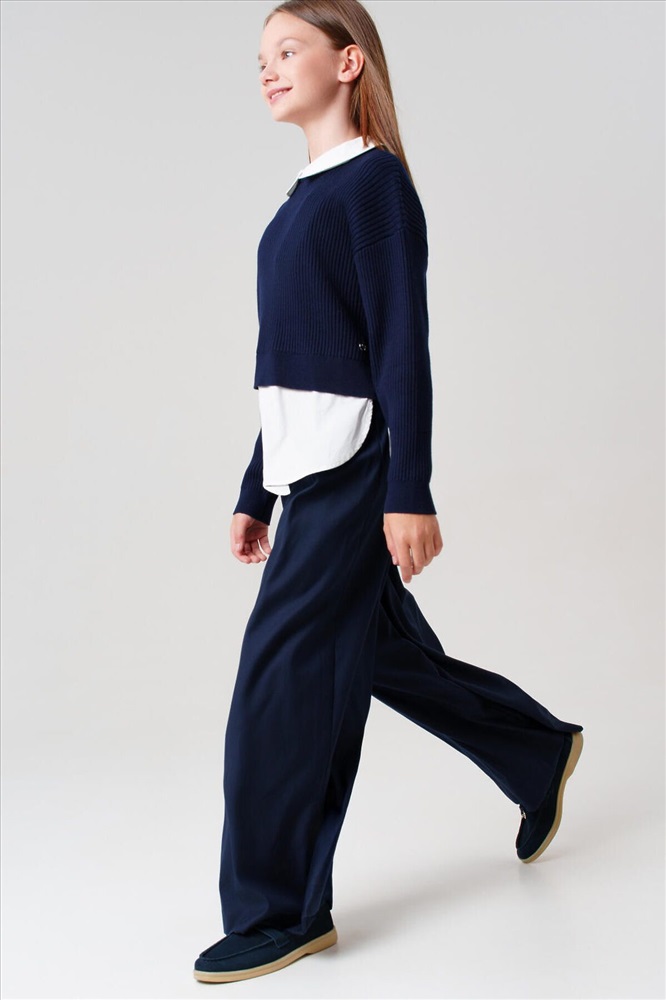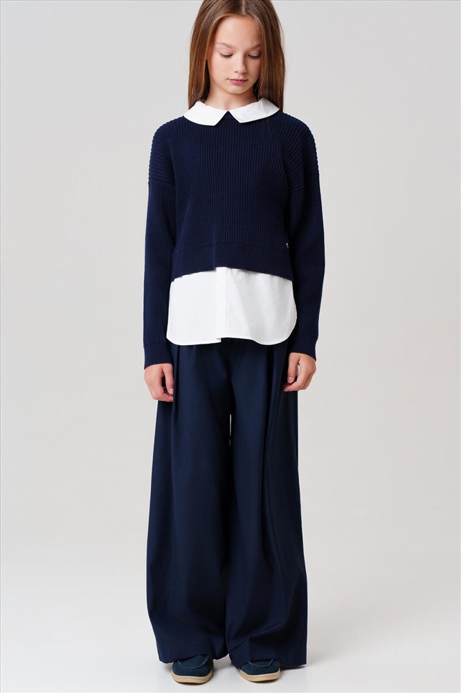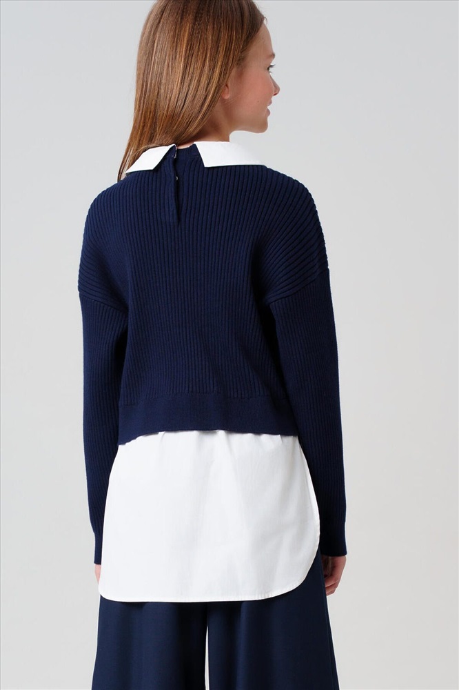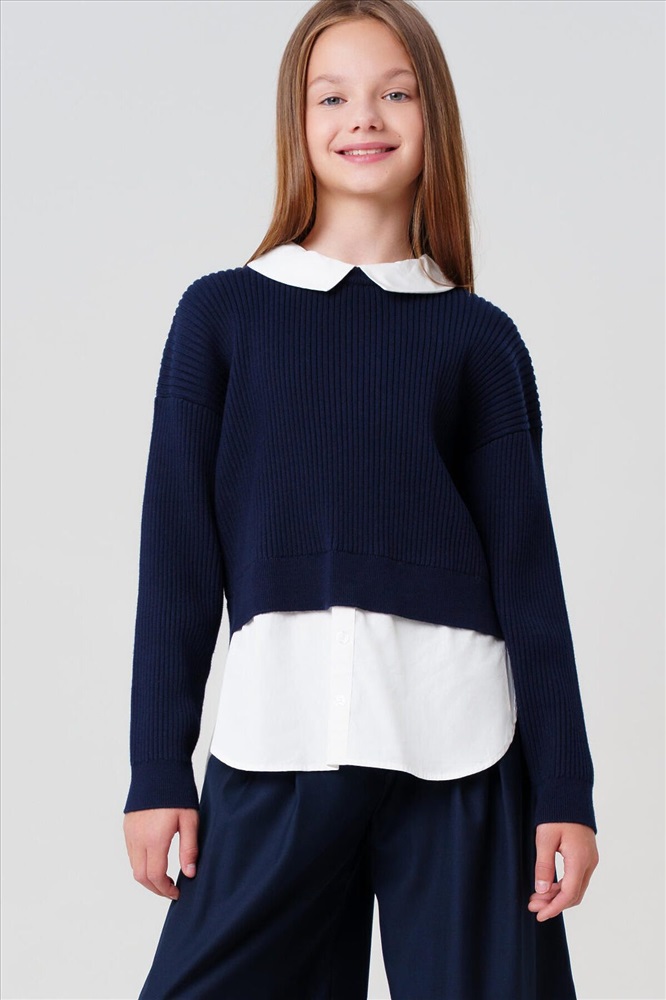 Классический темно-синий школьный трикотажный джемпер оверсайз для девочки подростка от PlayToday — модный и универсальный элемент гардероба, который подойдёт для школы, прогулок и активных будней. Свободный крой в стиле oversize обеспечивает максимальный комфорт и современный вид на каждый день. Преимущества модели: + мягкий трикотаж с высоким содержанием хлопка + застёжка на кнопки на спинке + эффект многослойности + удобный oversize-крой + универсальный темно-синий цвет + лёгкий уход Этот синий подростковый джемпер для школы мягко садится по фигуре, не стесняет движений и создаёт актуальный образ с имитацией многослойности. Застёжка на спинке позволяет легко надевать и снимать такой универсальный детский джемпер для девочек, а свободный силуэт идеально подходит для подростков, ценящих стиль и свободу. Глубокий синий оттенок прекрасно сочетается с классическими юбками, брюками, сарафанами и аксессуарами из коллекции PlayToday. Такой элегантный школьный джемпер — отличный выбор для школы, а также для повседневных и праздничных комплектов. Совет по стилю: сочетайте этот нарядный хлопковый джемпер для школьниц с белой рубашкой и юбкой для школьного образа, или добавьте джинсы и кеды для стильного повседневного лука. Модель легко стирается, быстро сохнет и не теряет форму после многочисленных стирок. Стильный синий джемпер представлен в размерах на рост 128–170 см — идеален для девочек и подростков от 8 до 16 лет. Модный темно-синий трикотажный джемпер в школу для девочки от PlayToday — это свобода движений, комфорт и стиль для школы и каждого дня!