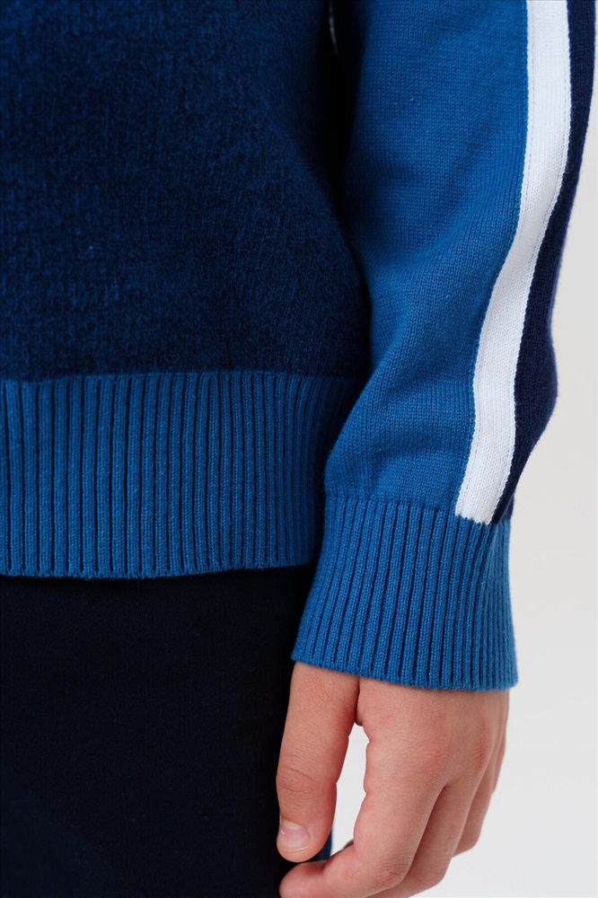 ID товара: 1178888 Состав: 82% Хлопок, 18% Нейлон Сезон: Демисезон Длина: Средняя Фасон: Прямой Рукав: Длинные Вырез горловины: Округлый Основная ткань: Хлопок Стиль: Повседневный Страна бренда: Германия Страна производства: Китай Классический тёмно-синий школьный вязаный джемпер для мальчика подростка от PlayToday — универсальный и модный элемент гардероба для школы и повседневных образов. Модель выполнена в классическом базовом силуэте: прямой крой обеспечивает свободу движений и современный внешний вид. Преимущества модели: + трикотаж с высоким содержанием хлопка + классический прямой крой + универсальный тёмно-синий цвет + лёгкий уход Этот синий подростковый джемпер для школы мягко садится по фигуре, не стесняет движений и остаётся комфортным в течение всего дня. Лаконичный, стильный дизайн понравится подросткам, которые ценят актуальный образ и индивидуальность. Материал приятен к телу, дышит и сохраняет аккуратный вид даже после множества стирок. Универсальный школьный джемпер для подростков отлично подходит для школы — его можно легко комбинировать с классическими брюками, джинсами или жилетами из коллекции PlayToday. Такой темно-синий детский джемпер для мальчиков станет основой для любого образа: как для строгих учебных дней, так и для прогулок и встреч с друзьями. Совет по стилю: сочетайте базовый трикотажный джемпер с белой рубашкой и строгими брюками для классического школьного комплекта или добавьте джинсы и кроссовки для расслабленного повседневного лука. Такой нарядный джемпер для школьников не требует сложного ухода, быстро сохнет и надолго остаётся аккуратным. Модель представлена в размерах на рост 128–176 см — оптимальный выбор для мальчиков и подростков от 8 до 16 лет. Модный синий вязаный кардиган в школу для мальчика от PlayToday — это комфорт, стиль и универсальность на каждый школьный день! Комментарии к товару