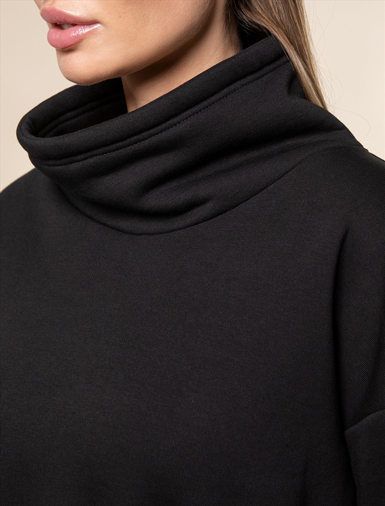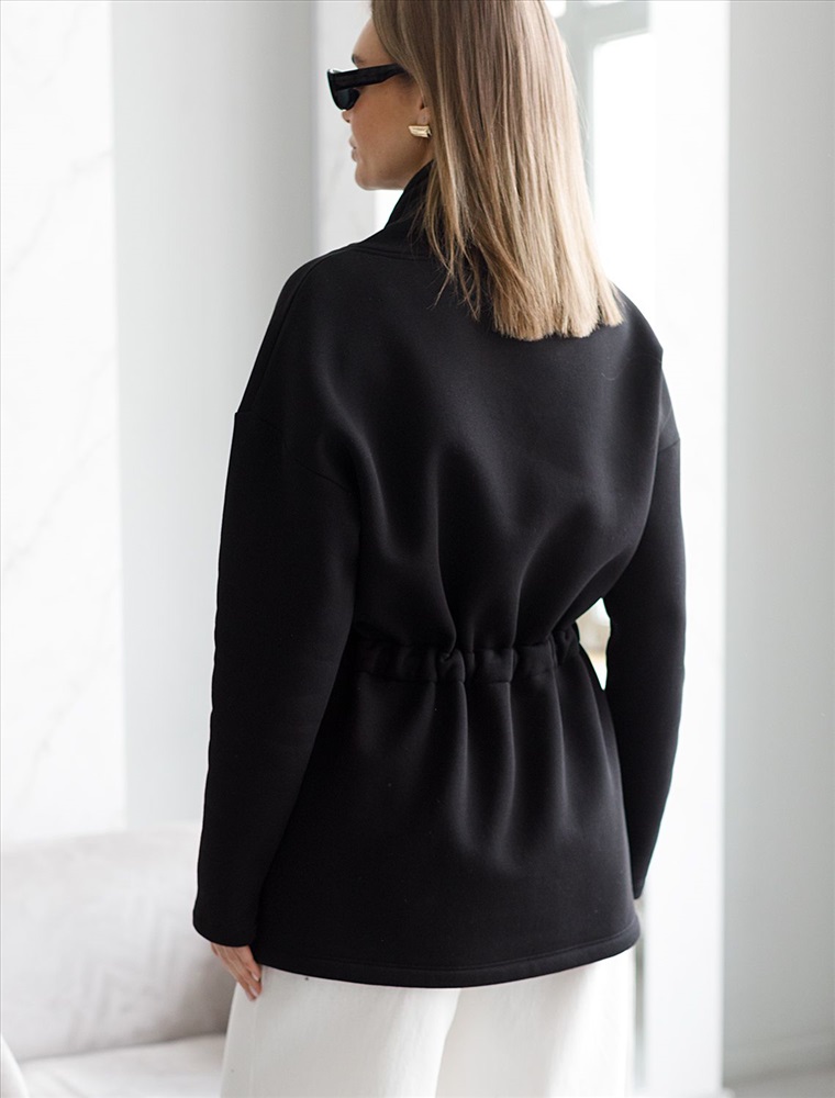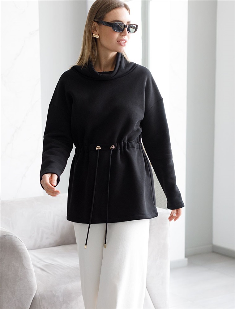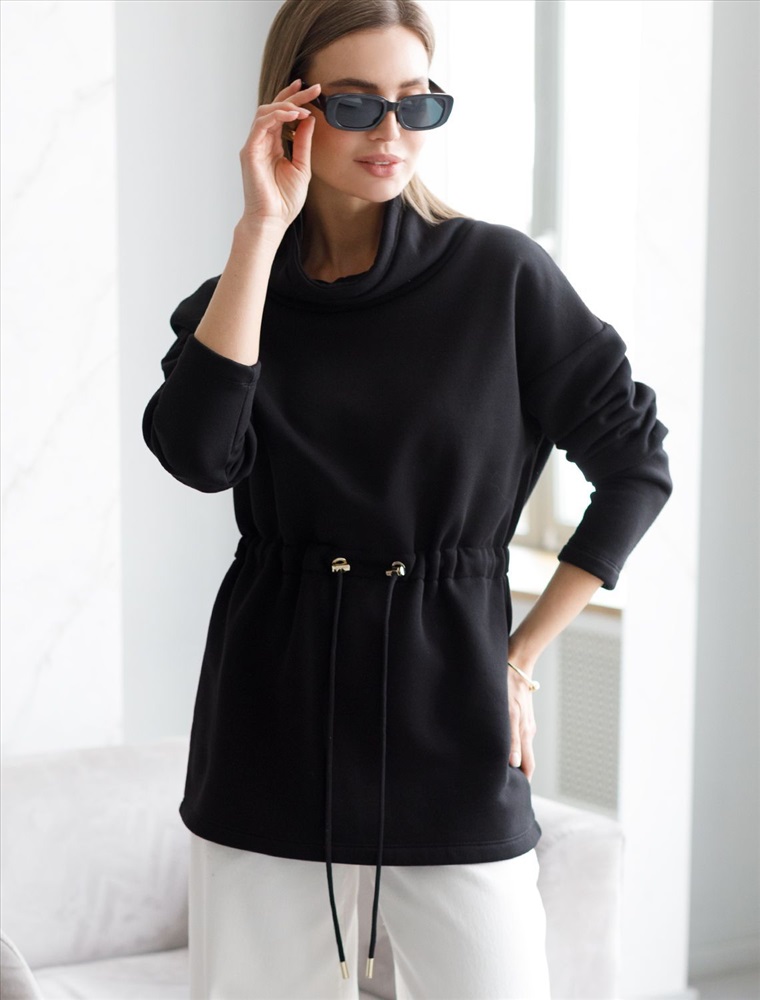 Джемпер выполнен из премиального футера-трехнитки. Модель с начесом дополнена хлопковым шнуром на талии регулируемым стопперами. Регулируя шнурок можно получить сразу две модели, свободный джемпер прямого кроя и дизайнерское решение с акцентом на талии. Соберите костюм вместе с брюками D44.129