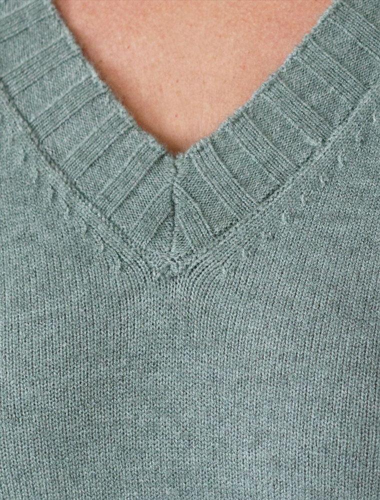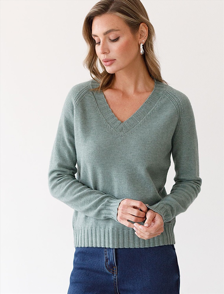 Невероятно женственный джемпер светло-оливкового цвета с V вырезом связан из высококачественной пряжи с кашемиром — идеальное сочетание мягкости и практичности. Пряжа с кашемиром придаёт ему бархатистую нежность и тонкую структуру, каждое прикосновение с которой, напоминает о тепле и уюте в прохладные дни. Благодаря нежной текстуре материала этот вариант отлично подходит даже для чувствительной кожи, не вызывая раздражения и дискомфорта в течение дня. Сдержанный, элегантный силуэт джемпера подчёркивает вкуc обладательницы, а филигранная отделка ворота — внимание к деталям. Универсальный оттенок и изящная мягкость делают его идеальным выбором в любой ситуации. Широкие манжеты и нижний край добавляют аккуратности, а продуманная посадка делает повседневный джемпер удобным для многослойных образов — от офисного комплекта, например, в сочетании с блузкой, до расслабленного уикенда. Свободный крой джемпера идеально подходит для женщин, которые ценят удобство и стиль одновременно, а так же идеально подходит на большие размеры. Благодаря качественной пряже свитер сохраняет форму и внешний вид даже после многократных носок. Практичный фасон идеально подходит для работы в офисе или встреч с друзьями. Благодаря классическому крою джемпер гармонично сочетается практически с любыми элементами гардероба, помогая всегда выглядеть актуально. Сочетается в костюме с брюками D38.013, D38.012 и юбкой D36.016
