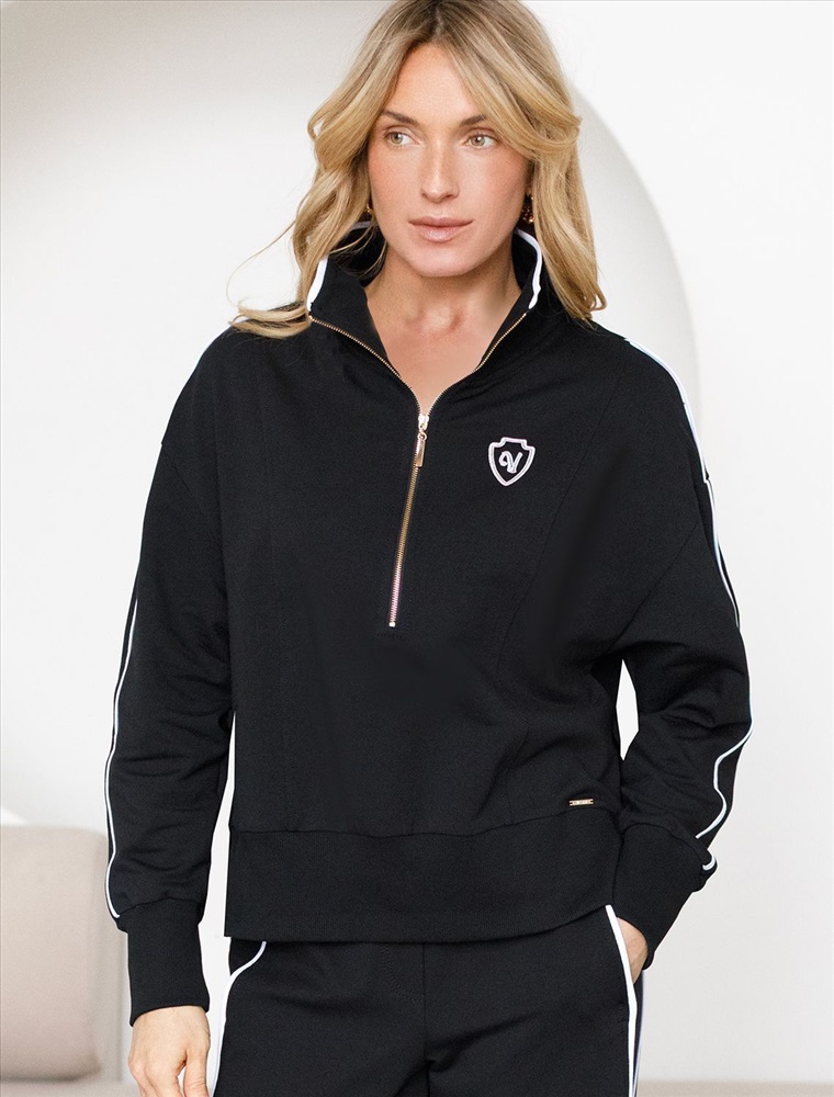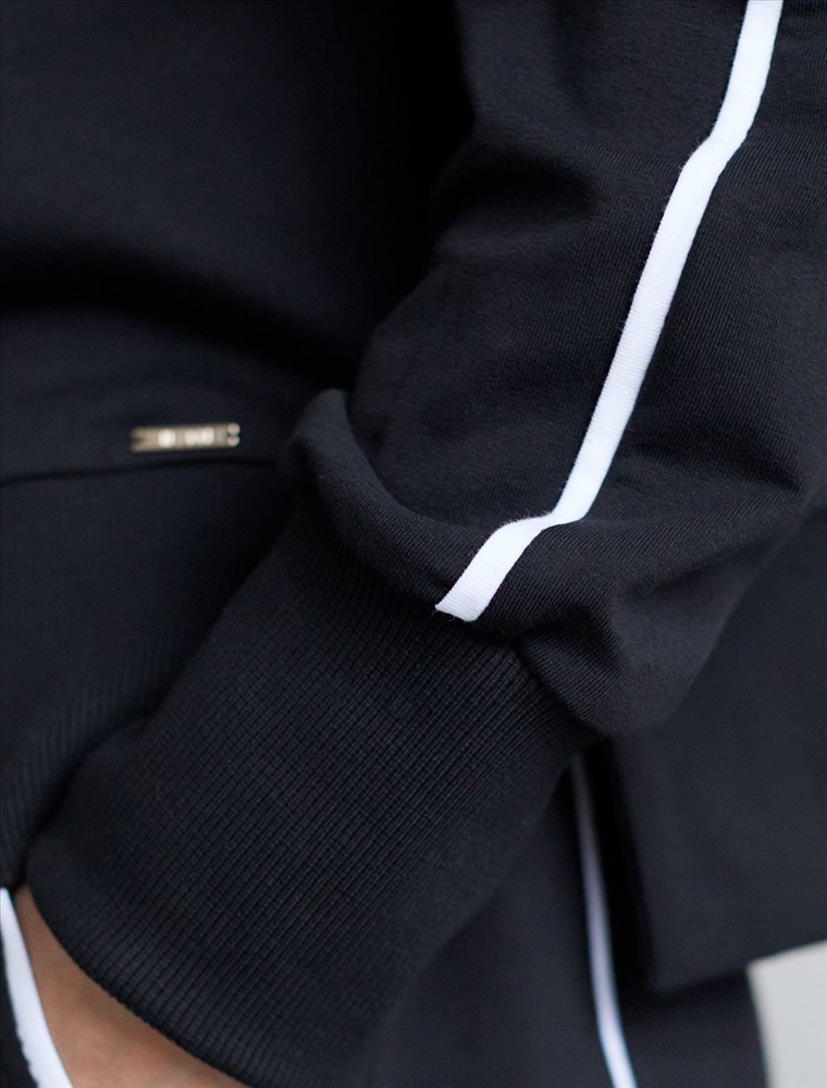 Джемпер черного цвета с воротом на молнии выполнен из футера двухнитки с эластаном 240 Г/м2. Натуральный хлопок обеспечивает мягкость и оптимальный теплообмен весной и летом. Нежный материал дарит ощущение уюта, а премиальное качество изготовления гарантирует долговечность и сохранение формы после множества стирок. Особенность свитшота - контрастные тонкие лампасы, которые добавляют современный акцент и делают образ более выразительным. Аккуратная вышивка в виде логотипа бренда, расположенная на груди, придает свитшоту индивидуальности без лишней вычурности. Представлена широкая размерная линейка, включая маленькие и большие размеры, что позволяет подобрать идеальный вариант для разной фигуры .Этот уютный свитшот на молнии отлично подходит для повседневной носки благодаря своей комфортной посадке и нежной текстуре. Свободный джемпер из футера станет идеальным выбором для активного отдыха, обеспечивая стильный внешний вид и удобство.