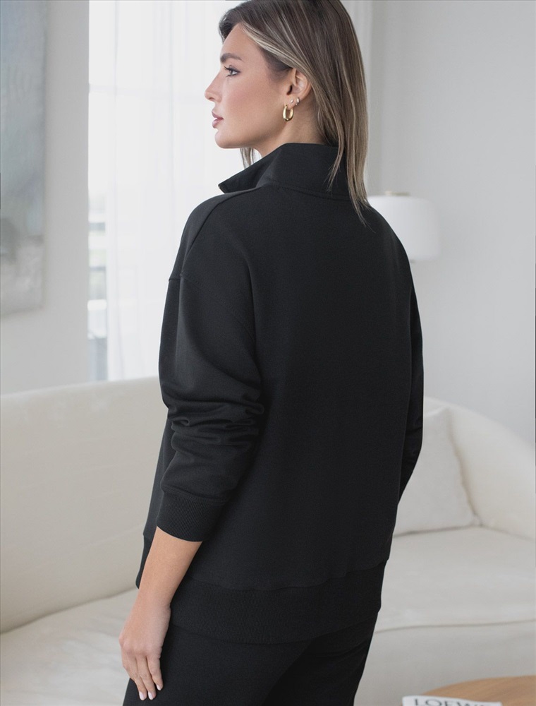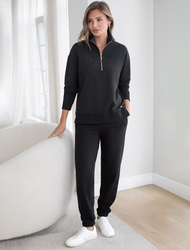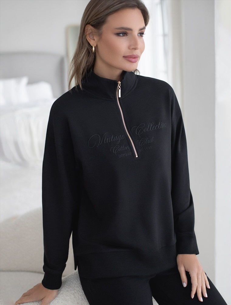 Уютный и комфортный вариант для прохладной погоды – стильный джемпер черного цвета с воротом на молнии. Изготовлен из премиального футера двухнитки с добавлением эластана. Материал сохраняет форму при длительном ношении и после многократных стирок, его мягкая текстура дарит ощущение уюта и тепла. Минималистичная вышивка в тон изделия в виде надписи. перевод надписи: Vinlage collection cotton club - Винтажная коллекция Хлопковый клуб. Свободный крой джемпера позволяет не ограничивать движения, что особенно важно для активного образа жизни. Подойдет на любую женскую фигуру, представлена широкая размерная линейка, большие размеры, легко комбинируется с другими вещами, создавая модные образы в стиле спорт-шик. Этот повседневный джемпер сочетает в себе удобство и актуальность, будет универсальным выбором для отдыха или прогулок.