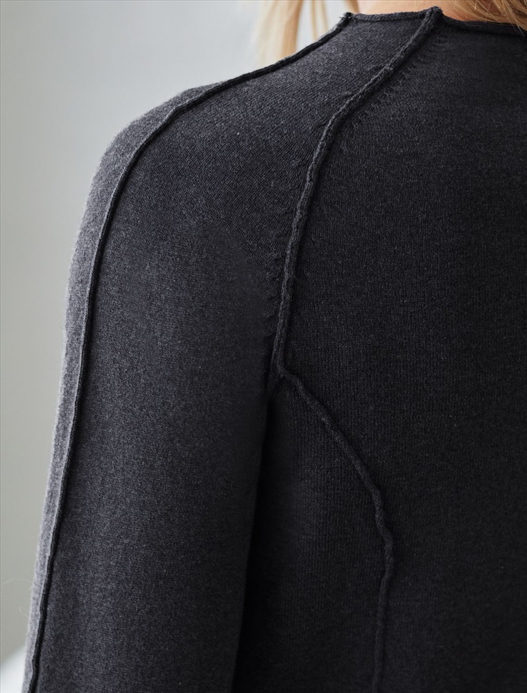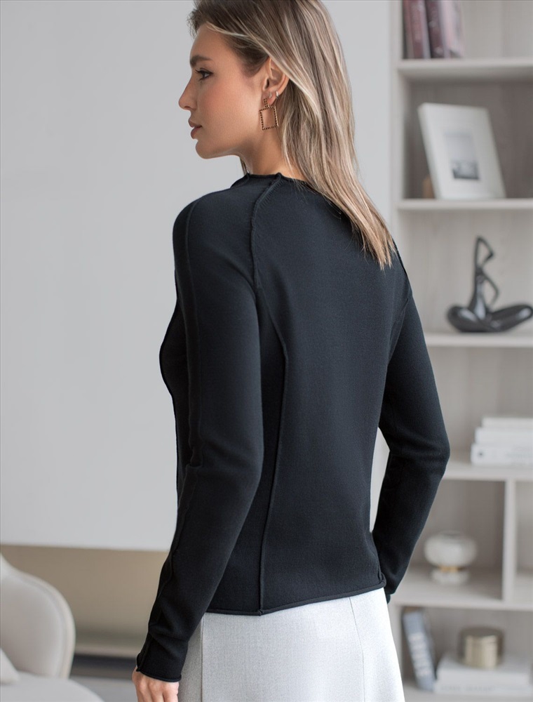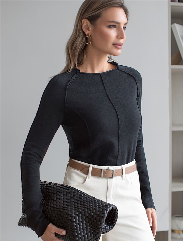 Размер товара на первом фото: 42 Джемпер тонкой вязки выполнен из мягкой хлопковой пряжи. Модель с декоративными швами идеально сидит по фигуре подчеркиваяч изгибы тела. Подходит для любой фигуры и впишется в любой гардероб. Изделие дополнено металлическим логотипом бренда.