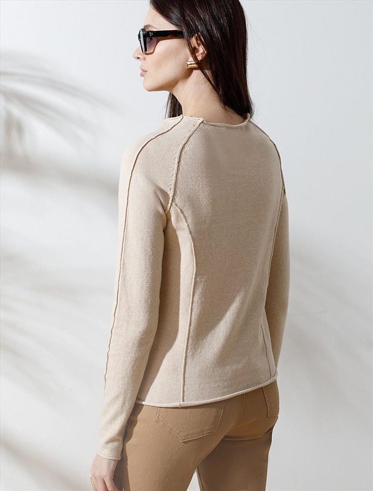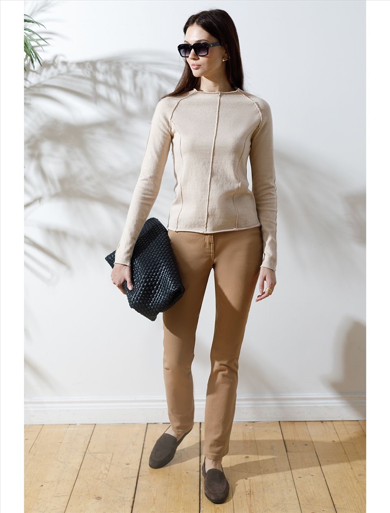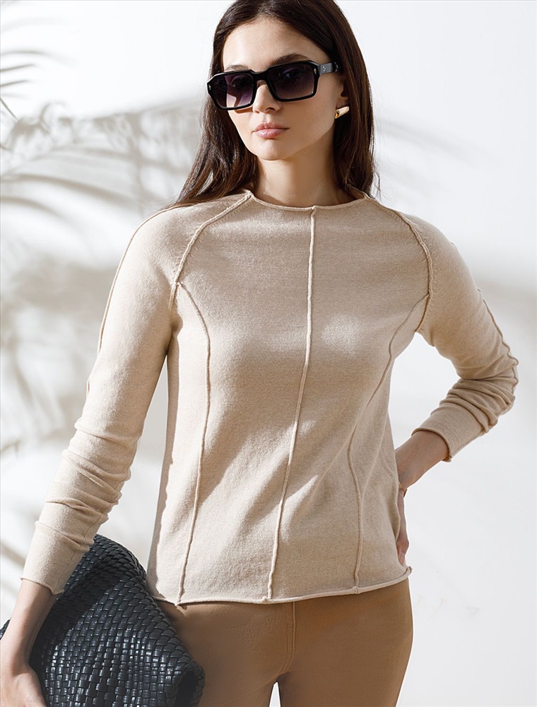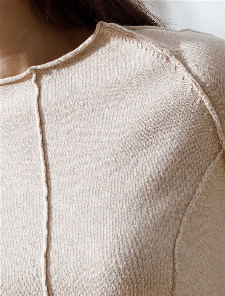 Джемпер тонкой вязки выполнен из мягкой хлопковой пряжи. Модель с декоративными швами идеально сидит по фигуре подчеркиваяч изгибы тела. Подходит для любой фигуры и впишется в любой гардероб. Изделие дополнено металлическим логотипом бренда.