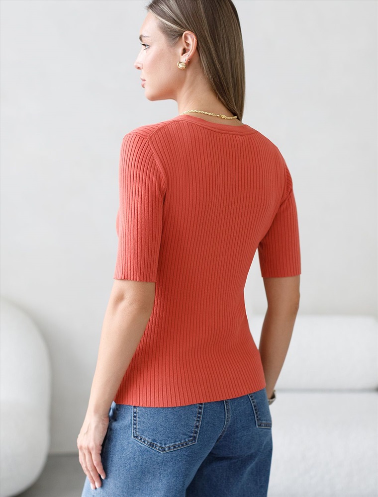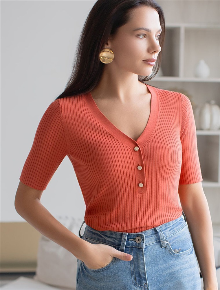 Плотность: 12 GG Параметры модели на первом фото: Рост 170, бюст 83, талия 64, бедра 88 Размер товара на первом фото: 42 Джемпер тонкой вязки из вискозы с нейлоном. Для производства изделия использована пряжа сердечникового прядения — когда нейлоновая нить (основа) обвивается вискозой. Вискоза обеспечивает приятную тактильность и гигроскопичность, а нейлон предотвращает растяжение и повышает устойчивость к пилингуемости. Модель с V- вырезом прилегающего силуэта дополнена золотистыми пуговицами. Изделие дополнено фирменным металлическим логотипом бренда. Комментарии к товару