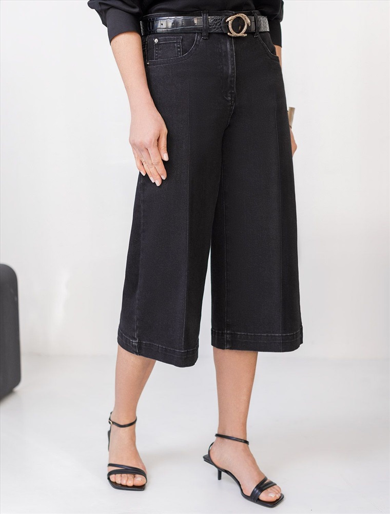 Плотность: 13 OZ Размер товара на первом фото: 42 Свободные джинсовые бермуды черного цвета из эластичного денима обеспечивают комфорт и стиль в повседневном образе. Длинные классические шорты с пятью карманами выполнены с широким подгибом по низу и со стрелками по всей длине, что эффектно удлиняет ноги и визуально стройнит силуэт. Правильная посадка и классический фасон подходит как для маленьких, так и для больших размеров. Материал эластичен, благодаря чему шорты отлично садятся по фигуре и не сковывают движения, обеспечивает долговечность изделия, сохраняя первоначальный вид даже после многократных стирок и активного использования. Шорты дополнены качественной фуртитурой и брендированным патчем из эко-кожи на поясе. Расклешенные шорты отличаются женственным кроем, такие бермуды легко комбинируются с различными элементами гардероба — от легких футболок до стильных рубашек, свитеров, позволяя создавать разнообразные образы как для повседневной носки, так и для отдыха. Сочетайте такие трендовые бермуды с высокими сапогами для создания классического осеннего образа или с обувью на плоском ходу для более расслабоенного в теплое время года. Эти повседневные шорты незаменимы в гардеробе каждой современной девушки и женщины. Комментарии к товару