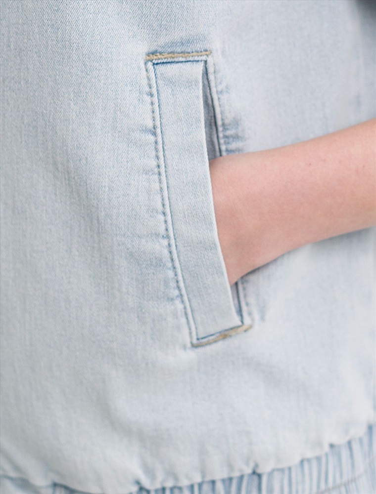 Плотность: 12,4 OZ Свободный стильный бомбер светло-голубого цвета выполнен из плтоного денима 12,4 OZ. После пошива изделие подвергли специальному виду вошинга — солт-стоун вошинг, что дословно значит стирка с каменной солью. Такой вид вошинга позволяет получить стильные потертости на голубых оттенках денима. На передней части бомбера выполнена вышивка по авторскому эскизу дизайнера — буквы V L T, оформленные вензельным шрифтом. Сама вышивка выполнена техникой «застил» машинным способом. Этот удобный джинсовый бомбер станет идеальным выбором для теплого сезона. Бомбер оснащен прорезными карманами, которые добавляют практичности и удобства в повседневном использовании. Аккуратная резинка внизу изделия помогает сохранить форму и придает дополнительную защиту от ветра. Воротник-стойка создает современный и стильный образ. Представленная размерная линейка позволяет подобрать оптимальный вариант для любой фигуры и размера, на маленький или плюс сайз, обеспечивая свободу движений. Он отлично сочетается с разной одеждой и подходит для повседневного стиля. Рекомендуем сочетать с артикулами: D54.309, D54.312 Комментарии к товару