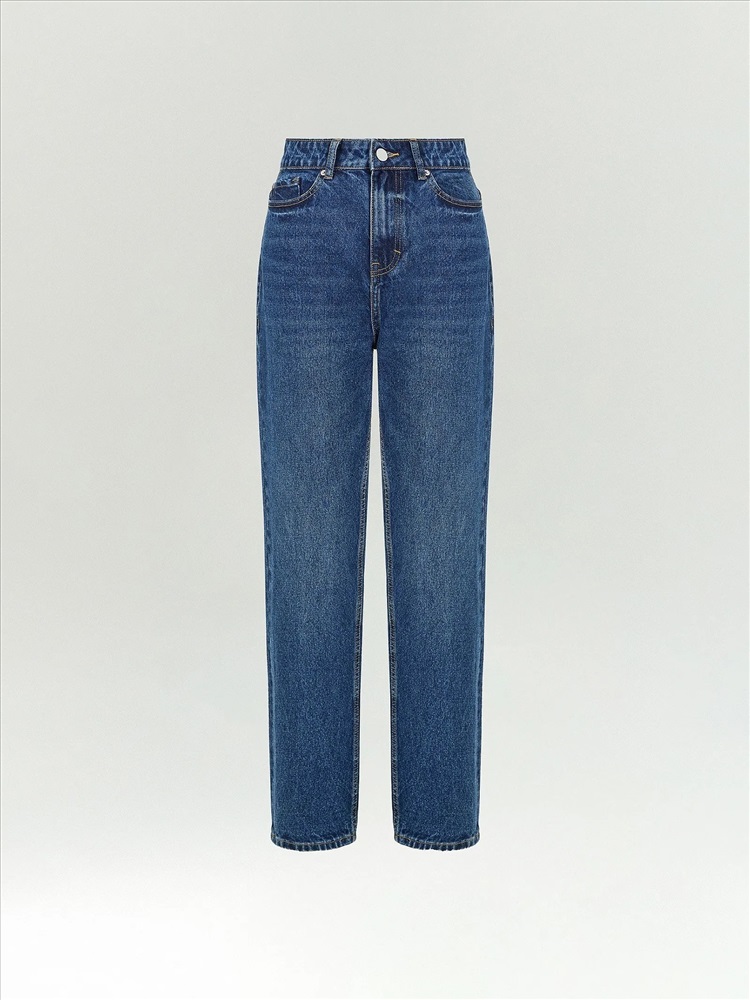 Джинсы в синем цвете визуально вытягивают силуэт, делают его плавнее. Посадка мom fit удачно смотрится на разных типах фигуры. Плотный деним с практичным составом комфортно садится, хорошо сохраняет форму, устойчив к износу и меньше мнётся. Джинсы сочетаются с любым базовым и нарядным низом.