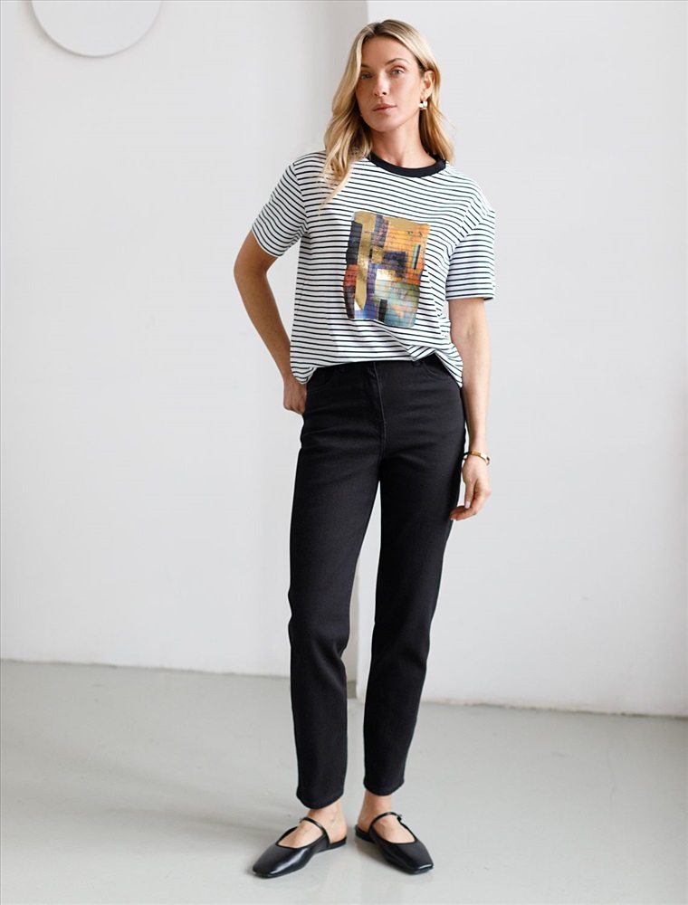 Джинсы мом фит из мягкой эластичной джинсы 12OZ