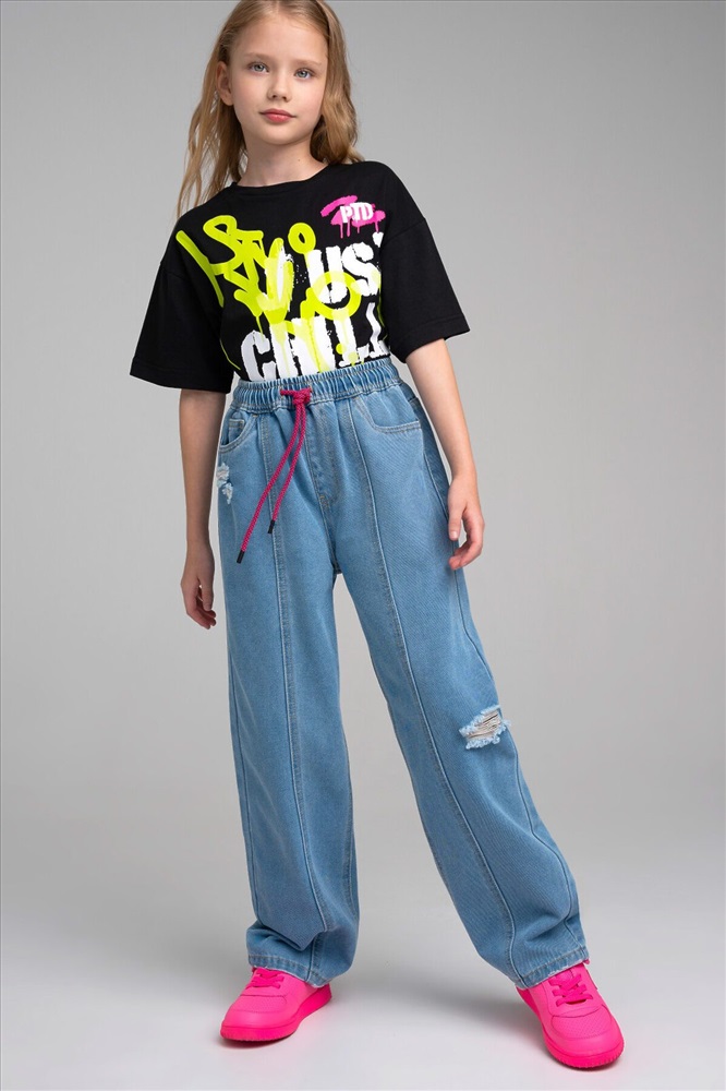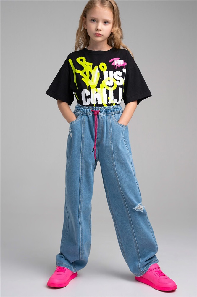 ID товара: 1074284 Состав: 75% Хлопок, 25% Полиэстер Сезон: Демисезон Длина: Полная Фасон: Свободный Вид застежки: Шнурок Тип карманов: Прорезной с клапаном на пуговице Основная ткань: Хлопок Стиль: повседневный Страна бренда: Германия Страна производства: Китай Джинсы для девочки подростка. BAGGY FIT - модный расслабленный крой. Средняя посадка. Джинсы на резинке со шнурком. 5 карманов. Модные элементы потертости и порванности. Комментарии к товару