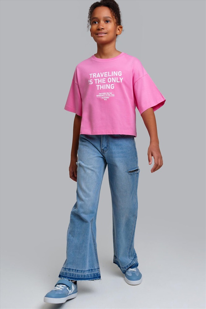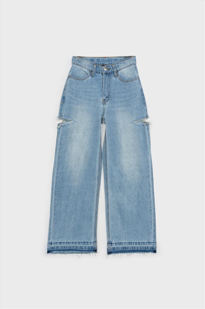 Джинсы для девочки подростка. WIDE LEG - свободная посадка и расклёшенные от бедра штанины. Высокая посадка. Внутренняя утяжка. Внутренняя утяжка. Застежка на молнию и болт. 4 кармана. Модель выполнена из качественного и плотного текстиля.