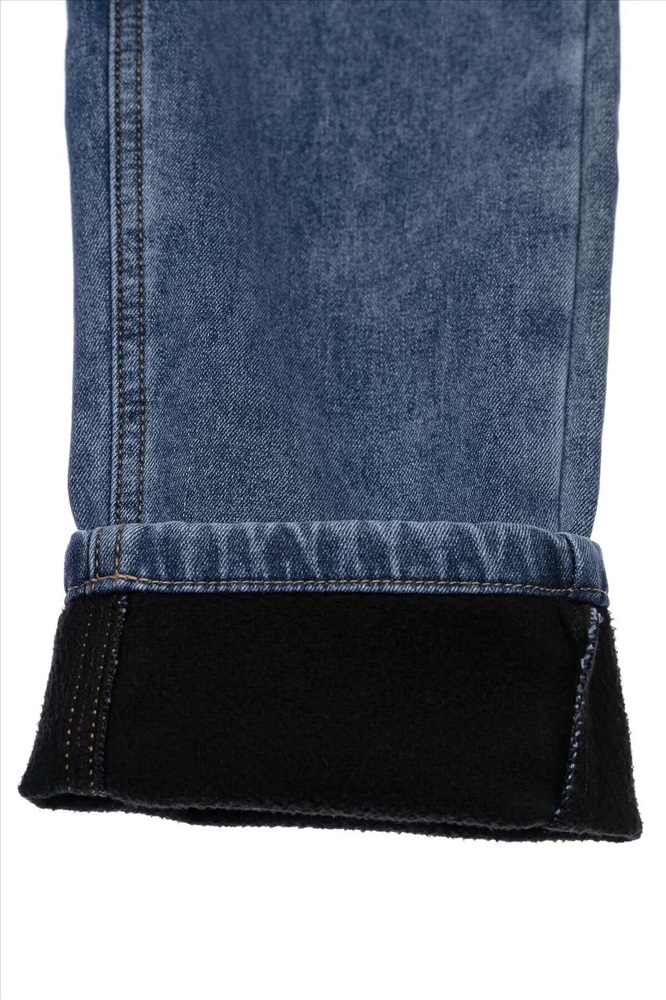Джинсы, утепленные флисом. Посадка regular fit – классический крой со слегка зауженным силуэтом от колена. Комфортная посадка за счет внутренней утяжки. Застежка на молнию и пуговицу.