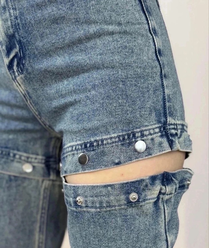 Застежка: кнопка | молния | пуговицы Джинсы-шорты выполнены из качественного материала, что обеспечивает их долговечность и износостойкость. Модель с широкими ногами и высокой посадкой подчеркнет вашу фигуру, делая вас еще более привлекательной. Удобные накладные карманы добавят практичности к вашей повседневной одежде. Благодаря отсутствию утеплителя, эти джинсы идеально подходят для всего года, а пуговицы и молния обеспечивают легкость в одевании и снимании. Декоративные заклепки добавляют образу индивидуальности и стиля. Выбирайте эти джинсы для создания уникального и комфортного образа в любой ситуации. отстегнув штанины, получаете шикарные шорты. 25 - 40 26 - 42 27 - 44 28 - 46 29 - 48 30 - 50