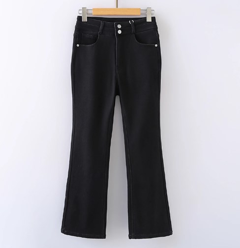 Джинсы слегка расклешенные средней и высокой талии с флисовой подкладкой МО*КО