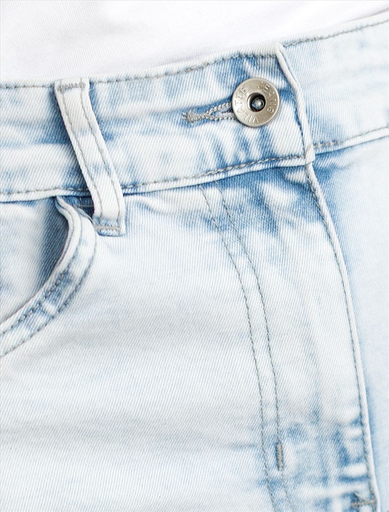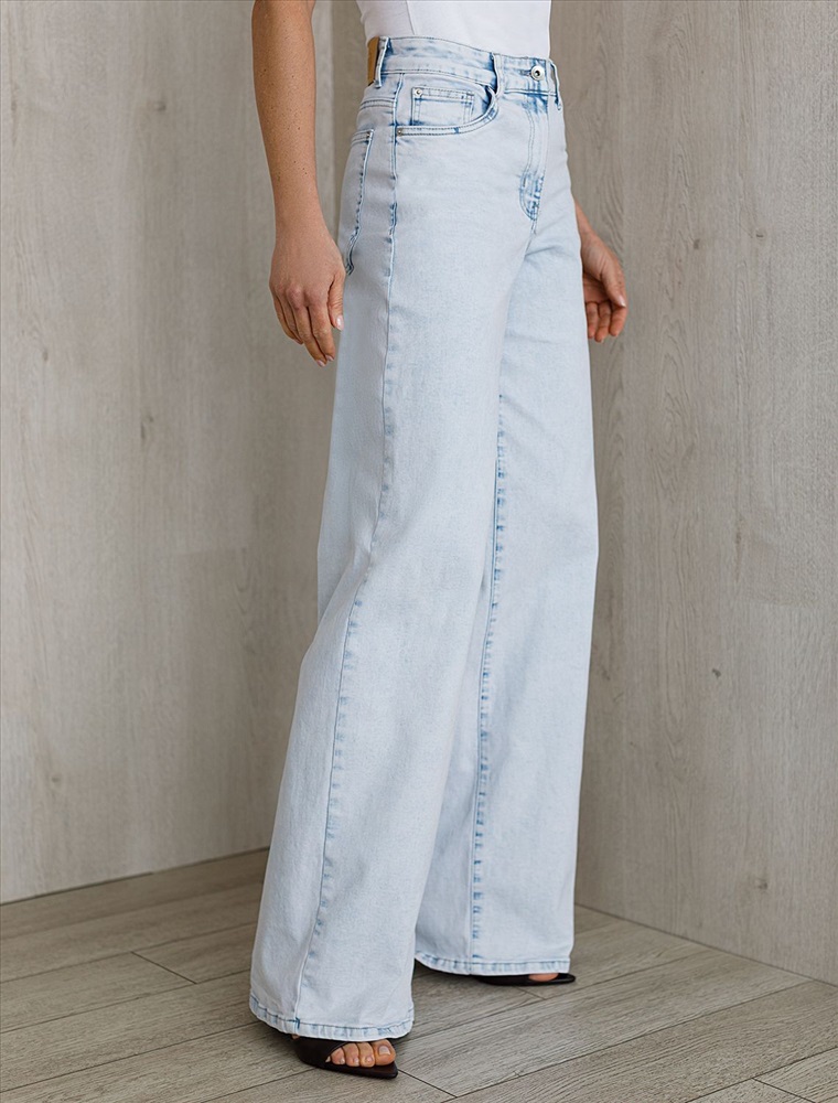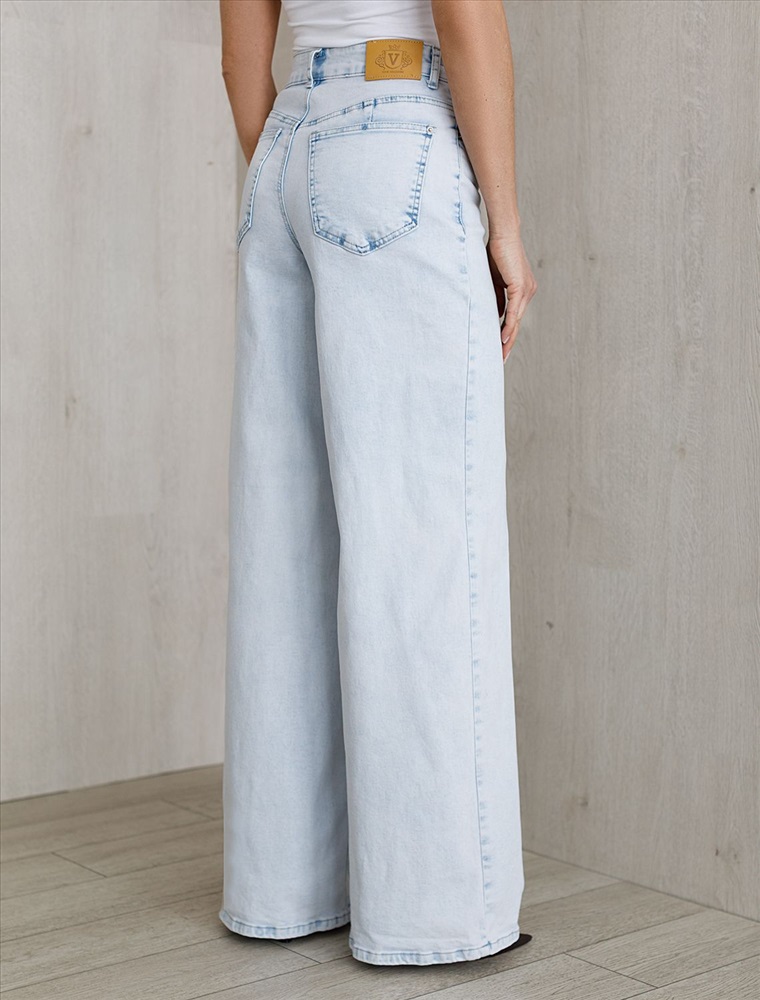 Джинсы трубы светло-голубого цвета выполнены из эластичного денима плотностью 13,7 OZ - классическая структура, которая отлично держит форму.и подчеркивает фигуру. После пошива изделие подвергли специальному виду вошинга — salt-stone washing (солт-стоун вошинг), что дословно значит стирка с каменной солью. Такой вид вошинга позволяет получить стильные потертости на голубых оттенках денима. Джинсы прямого кроя визуально вытягивают силуэт, благодаря эластану в составе аккуратно садятся на любую фигуру и обеспечивают максимальный комфорт в течение дня, не сковывая движения. Широкая размерная линейка подходит для разных типов фигур: свободные джинсы комфортны как для обладательниц пышных форм, так и для худеньких. Плотные джинсы идеально держат форму даже при активном движении и не вытягиваются после долгой носки. Качественная фурнитура и нашивка из эко-кожи с логотипом бренда делают эти джинсы премиальными. Широкий крой добавляет актуальности — такие джинсы отлично сочетаются как с обувью на каблуке, так и на плоском ходу. Благодаря универсальному дизайну джинсы легко комбинируется с разными элементами гардероба.