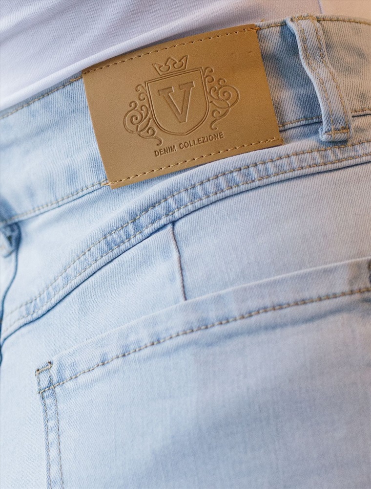 Джинсы-трубы из эластичного денима