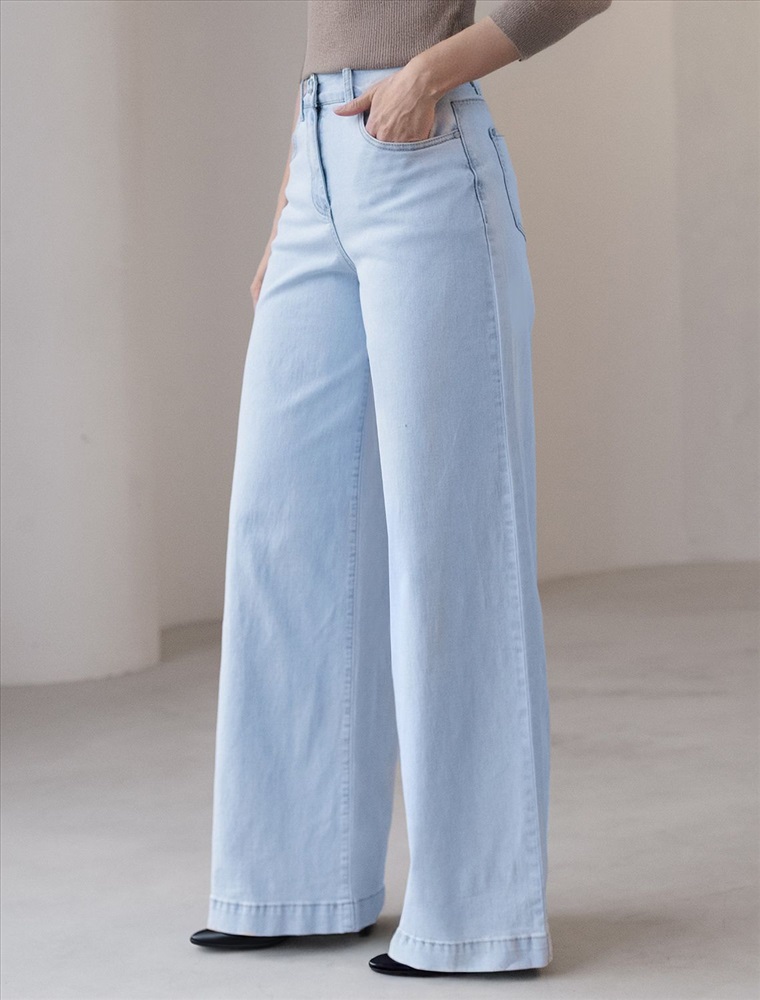 Размер товара на первом фото: 42 Джинсы-трубы выполнены из эластичного тонкого денима. Модель в голубом оттенке с легкой стиркой свободного кроя с посадкой на талии визуально вытягивает ноги и удлиняет силуэт. Хорошо подойдут для расслабленных повседневных, уличных и офисных образов. Сочетаются с любым верхом от повседневного до классического.