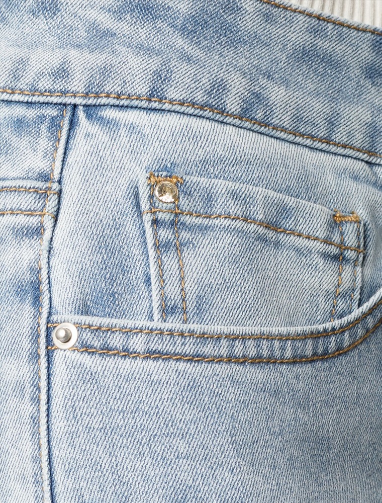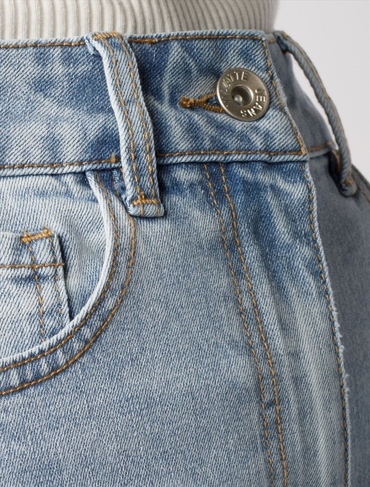 Джинсы трубы рваные из эластичного денима средней плотности