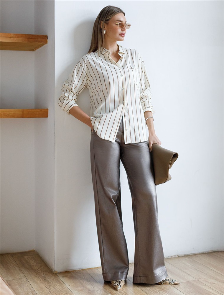 Плотность: 300 OZ Эффектные джинсы трубы черного цвета с темно-серебряным металлизированным покрытием добавят стильный акценты в любой гардероб современной женщины. Плотный и эластичный материал обеспечивает комфортные ощущения на протяжении всего дня, а высокая посадка на талии подчеркивает достоинства фигуры. Мягкий блеск металлического покрытия привлекает внимание и создает модное настроение для осени и любого другого сезона. Актуальный крой прямых джинс визуально вытягивает силуэт, дачно подчеркивает фигуру, подходит как для маленьких, так и для больших размеров, а также отлично смотрится на полные бедра.. Высокий уровень эластичности ткани гарантирует свободу движений даже при активном образе жизни, при этом сохраняет форму джинс длительное время. Модель подходит для девушек разного возраста, а так же можно выбрать ростовку на невысокий или высокий рост. Комфорт сочетается с модными тенденциями: эти трендовые джинсы легко комбинируются с базовыми вещами и яркими аксессуарами, позволяя создавать интересные образы как для повседневных выходов, так и для особых случаев.