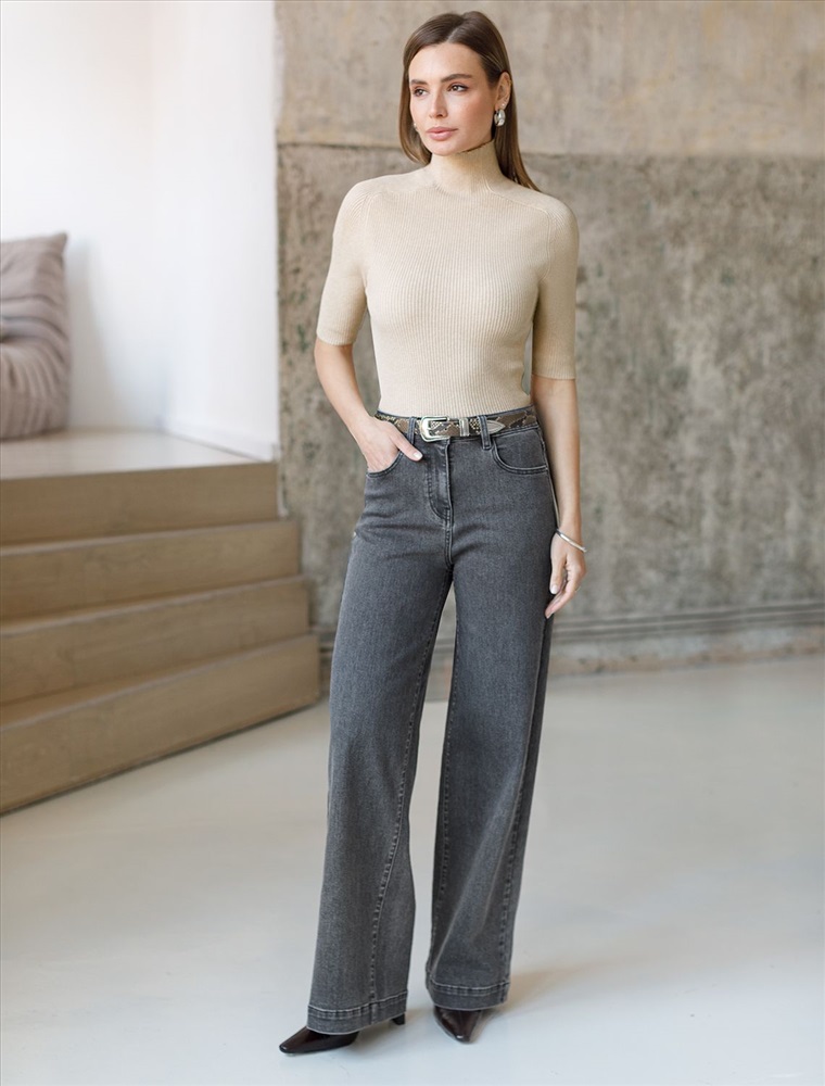 Стильные джинсы трубы серого цвета прямого кроя выполнены из эластичного денима плотностью 13 OZ, что делает их особенно удобными для повседневной носки. Декоративная стирка добавляет современный акцент и подчеркивает современный дизайн. Джинсы правильного кроя визуально вытягивают силуэт, благодаря эластану в составе аккуратно садятся на любую фигуру, подчеркивая достоинства, а обеспечивают максимальный комфорт в течение дня, не сковывая движения. Широкая размерная линейка подходит для разных типов фигур: свободные джинсы комфортны как для обладательниц пышных форм, так и для худеньких. Плотные джинсы идеально держат форму даже при активном движении и не вытягиваются после долгой носки. Качественная фурнитура, практичные карманы и контрастная строчка делают эти джинсы премиальными. Широкий подгиб добавляет актуальности — такой тренд отлично сочетается как с обувью на каблуке, так и на плоском ходу. Благодаря универсальному дизайну джинсы легко комбинируется с разными элементами гардероба: свитерами для прохладной осени или легкими блузками в межсезонье.