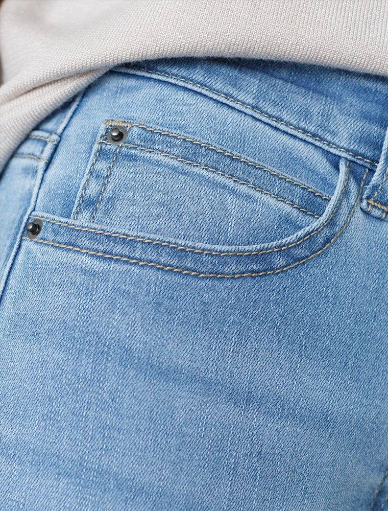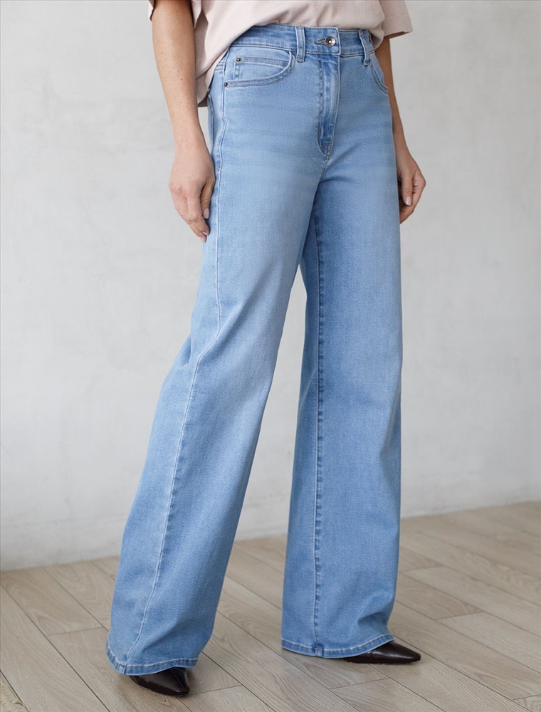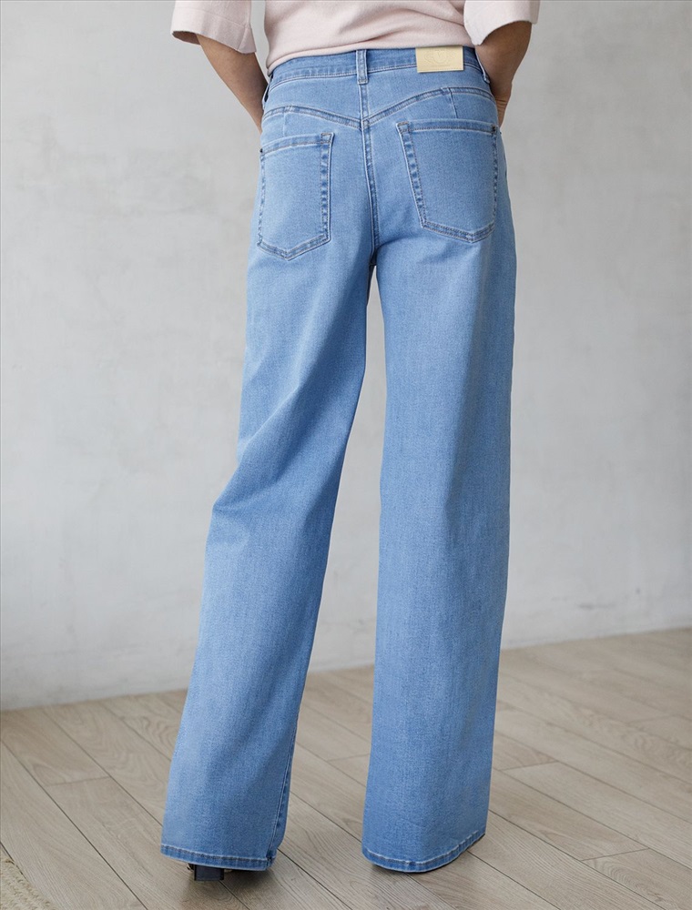 Стильные прямые джинсы голубого цвета цвета прямого кроя выполнены из эластичного денима плотностью 12,5 OZ, что делает их особенно удобными для повседневной носки. При производстве джинсов применена технология «вареные швы», которая основана на локальном вымывании красителя из плотных участков ткани — сгибов и швов — за счет механического воздействия во время промышленной стирки. Стоун вошинг - энзимная стирка с камнями. Камни воздействуют на ткань, выбивая краску на швах, создавая контрастные мраморные потертости и мягкость. Легкая декоративная стирка добавляет интересный акцент и подчеркивает современный дизайн. Джинсы правильного кроя визуально вытягивают силуэт, благодаря эластану в составе аккуратно садятся на любую фигуру, подчеркивая достоинства и обеспечивают максимальный комфорт в течение дня, не сковывая движения. Широкая размерная линейка подходит для разных типов фигур: свободные джинсы комфортны как для обладательниц пышных форм, так и для худеньких. Джинсы идеально держат форму даже при активном движении и не вытягиваются после долгой носки. Качественная надежная фурнитура делает эти джинсы премиальными. Прямой крой добавляет актуальности — такой тренд отлично сочетается как с обувью на каблуке, так и на плоском ходу. Благодаря универсальному дизайну джинсы легко комбинируются с разными элементами гардероба.