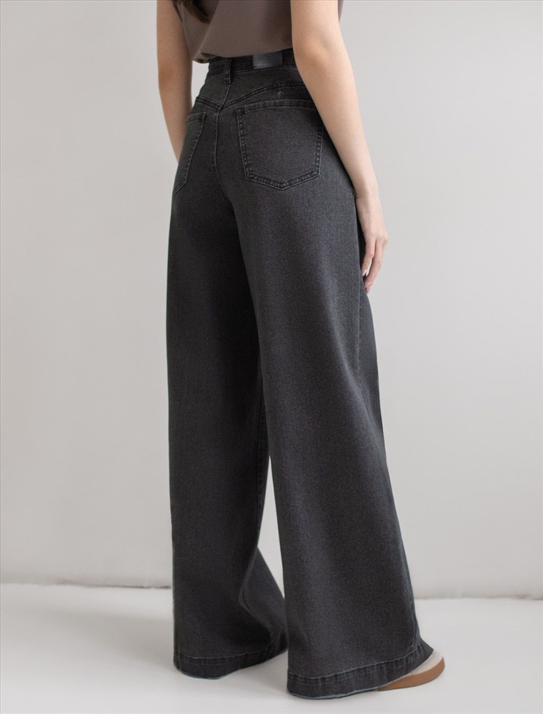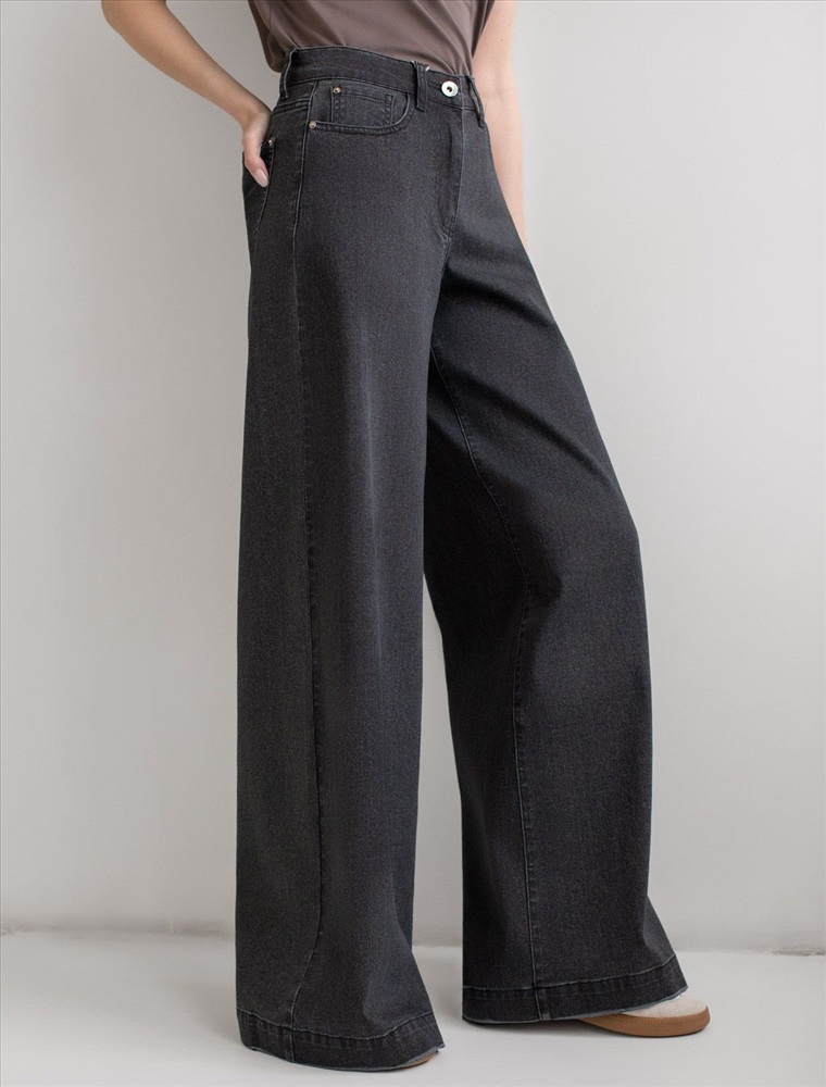 Размер товара на первом фото: 42 Стильные расклешенные джинсы черного цвета из эластичного денима созданы для современного образа и максимального комфорта. При производстве джинсов применена технология «вареные швы», которая основана на локальном вымывании красителя из плотных участков ткани — сгибов и швов — за счет механического воздействия во время промышленной стирки. Стоун вошинг - энзимная стирка с камнями. Камни воздействуют на ткань, выбивая краску на швах, создавая контрастные мраморные потертости и мягкость. Премиальный материал обеспечивает надежность и приятные ощущения при носке, а добавление эластичных волокон делает посадку особенно удобной. Высокая талия и расширенный крой к низу визуально вытягивает рост и подчеркивает достоинства, делая силуэт женственным, а декоративная стирка добавляет акцент. Эти широкие джинсы - оличное решение для девушек размера полюс сайз. Детали продуманы до мелочей: мягкий пояс не сдавливает живот, задние карманы и шов расположены на правильном уровне, что бы визуально подтянуть фигуру, а плотный джинс сохраняет форму после длительной носки и частых стирок. Трендовые джинсы свободно ложатся по ноге и создают эффектный образ на каждый день или для особых случаев.Такая модель подходит на любое время года, легко комбинируются с обувью на каблуке или кроссовками — универсальность фасона позволяет создавать образы как для офиса, так и для прогулок по городу.